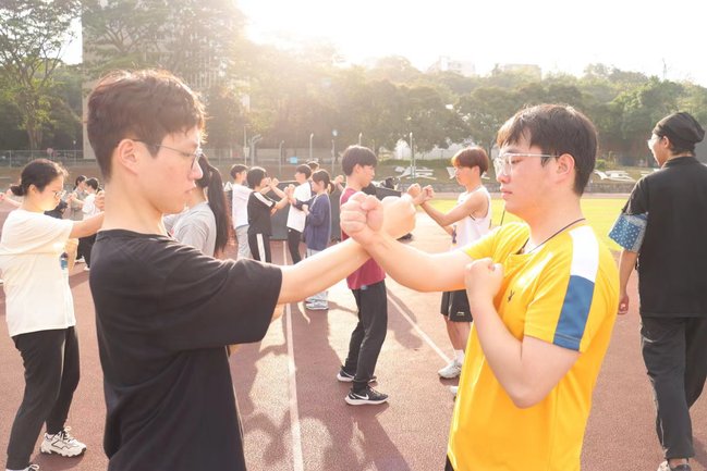 近年来,我校主动落实体育融合,积极引进武术世界太极拳冠军和全运会冠军等担任体育教师,并通过校运会武术赛事和开设武术课程,让学生掌握一项武术技能,旨在让学生理解武术作为中华优秀传统文化的时代价值和意义,培养学生坚强的意志品质,使学生热爱体育,注重武德,培育出学生良好的品行。通过弘扬中华优秀传统文化,培养学生强烈的民族自豪感,增强文化自觉,坚定文化自信。