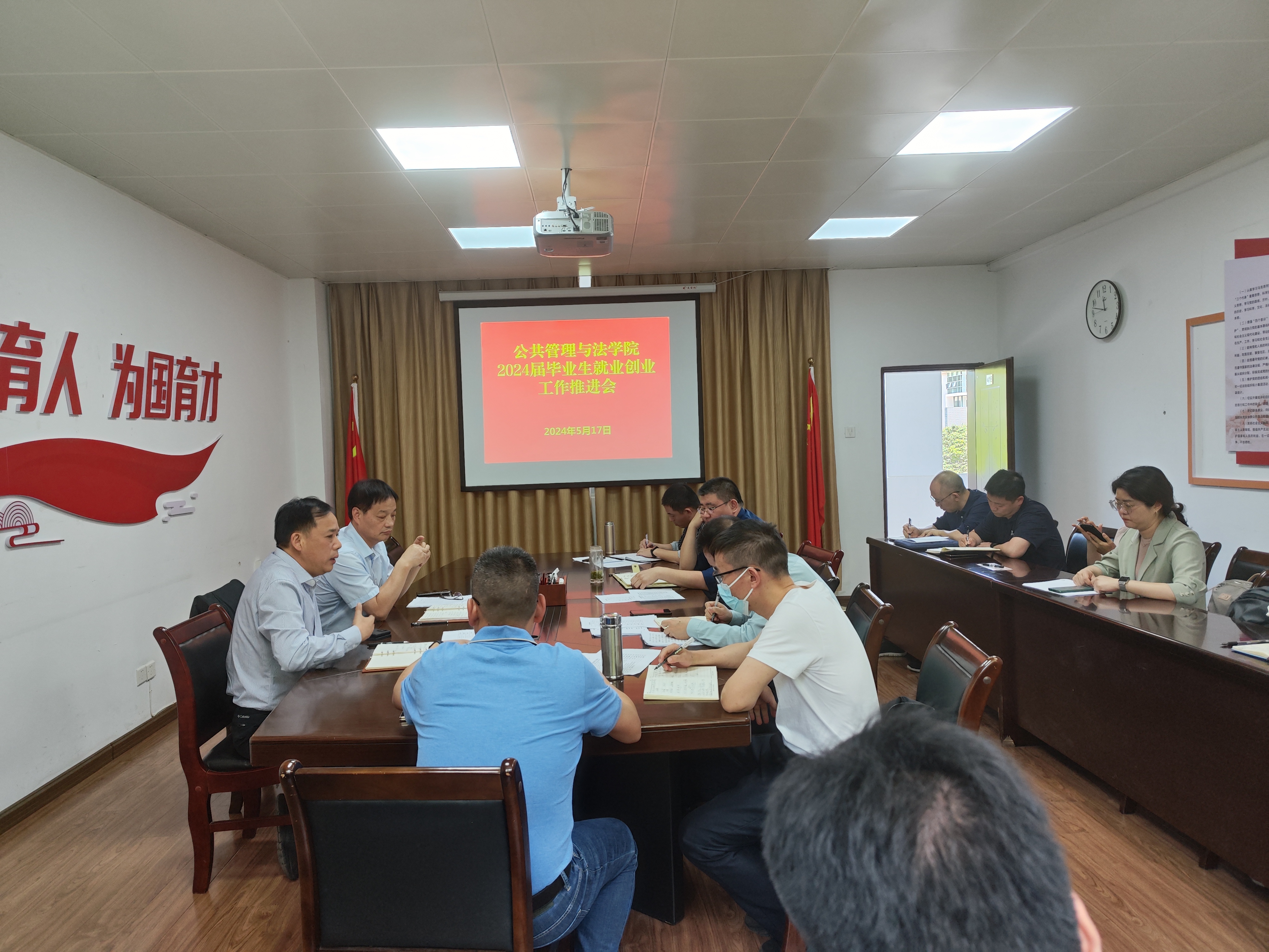 5月17日上午,公共管理与法学院在院办416会议室召开2024届毕业生就业创业工作推进会,学院领导班子成员、各系负责人和辅导员参加会议。会议由院党委书记曾起郁主持。