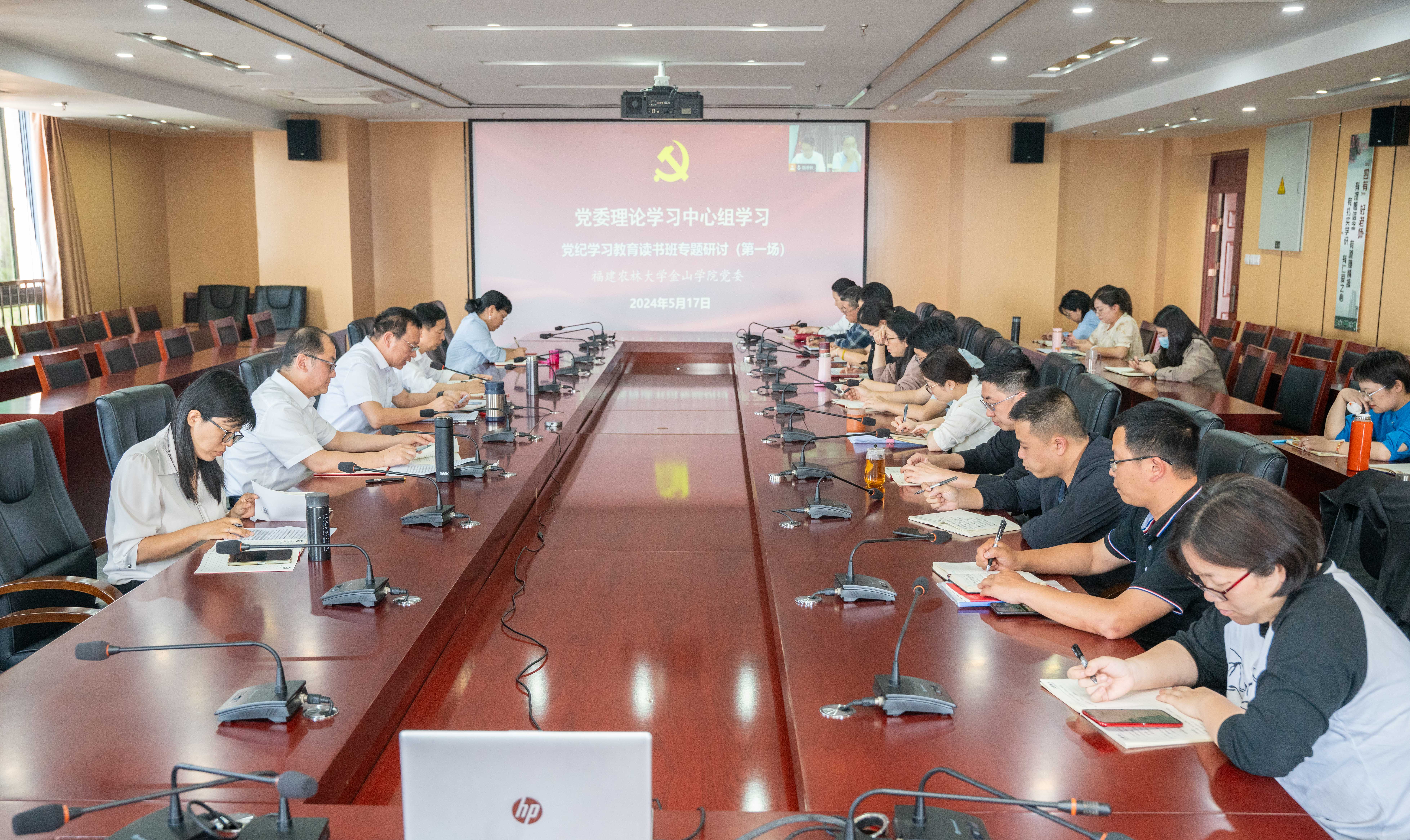 5月17日下午,金山学院党委理论学习中心组在学院第二会议室开展党纪学习教育读书班第一次专题研讨,院领导,各党总支书记、各系(院)负责人、各机关部处负责人参加会议。会议由院党委常务副书记孙思惟主持。