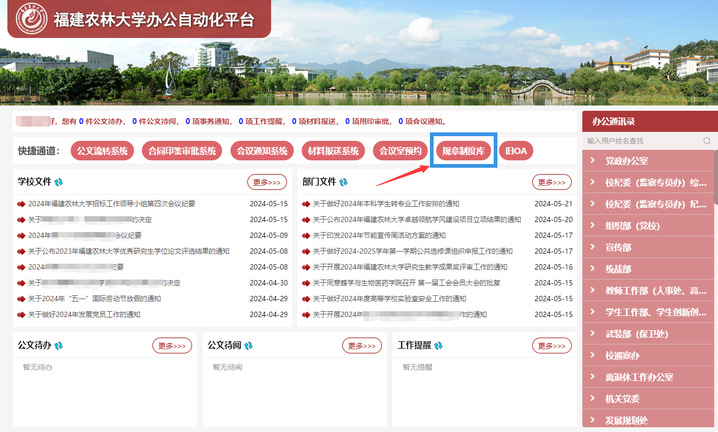 为进一步提升学校规章制度管理信息化和科学化水平,更好地服务师生查询使用校内规范性制度文件,信息中心与校党政办共同设计开发了“规章制度库”,在学校OA系统中设置“规章制度库”模块。目前,全库已收录了自OA系统上线运行以来,学校施行的340余项校内规章制度。