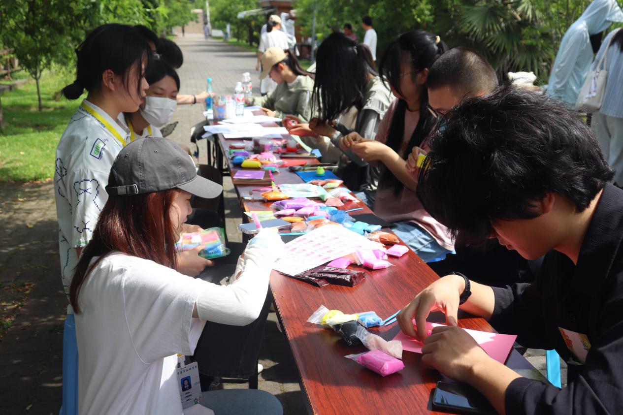 5月19日,线下心理游园活动在春晖桥举办。活动现场,箭飞壶转,弹弹棋的砰砰声不绝于耳,丰富多样的形式得到了同学们的积极参与和热烈反应,投壶、stroop大挑战、快乐能量瓶、DIY超轻黏土画、弹弹棋对决让人目不暇接……同学们眼疾手快,创意无垠,愉悦的氛围充斥在春晖桥周围。