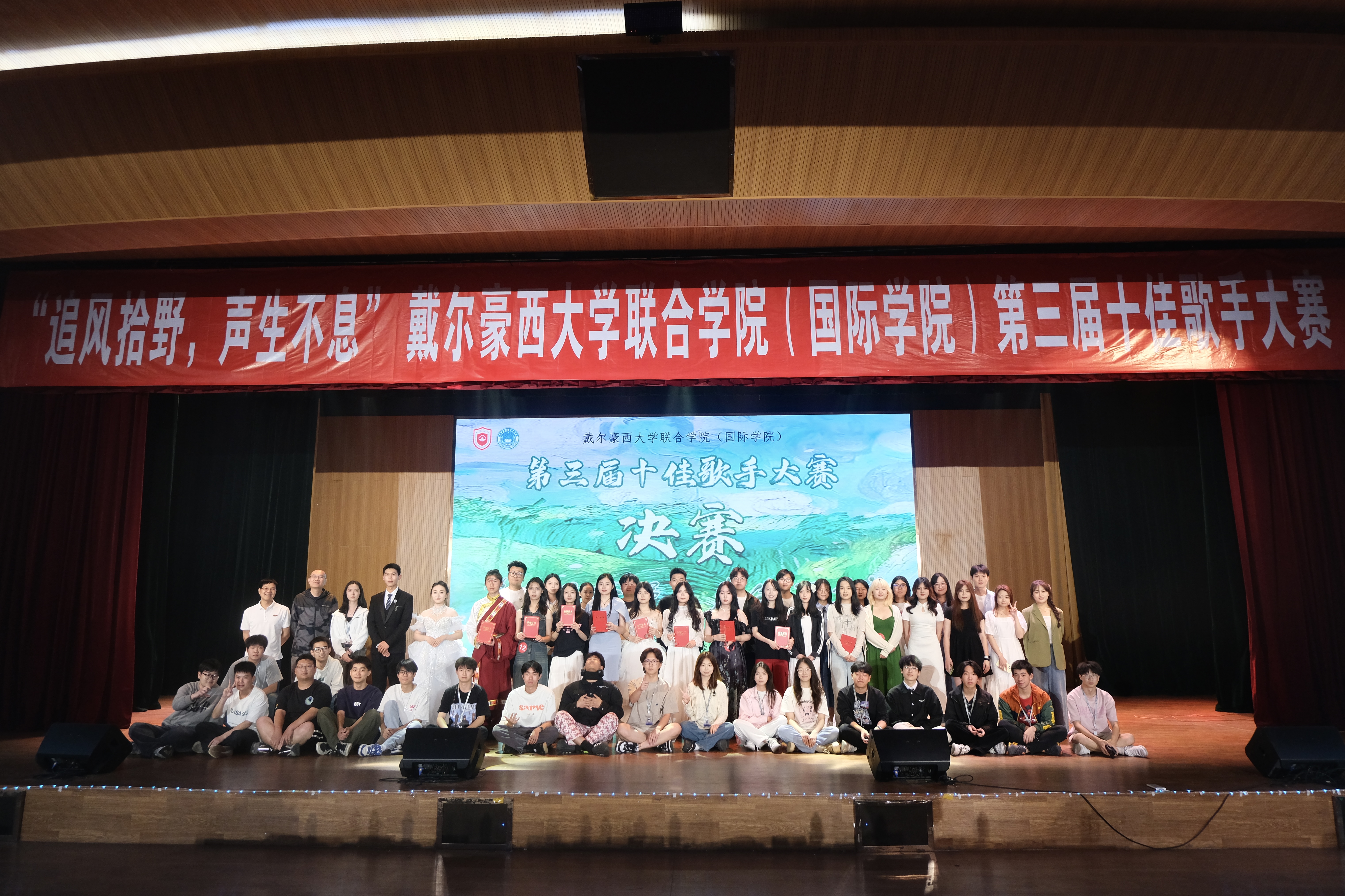 5月16日晚,戴尔豪西大学联合学院(国际学院)于旗山校区大报告厅举行“追风拾野,声生不息”第三届十佳歌手决赛。本次比赛邀请福州大学至诚学院2011届音乐学专业王蕾老师、开云网页版校第十六届十佳歌手大赛冠军陈自伟、旗山校区校合唱团团长龙宗渊以及交通与土木工程学院十佳歌手修翰林,学院党委副书记刘敏、团委书记王庆丰、全体辅导员、各年级学生代表以及其他学院文体骨干出席本次比赛,师生共计400余人参加活动。