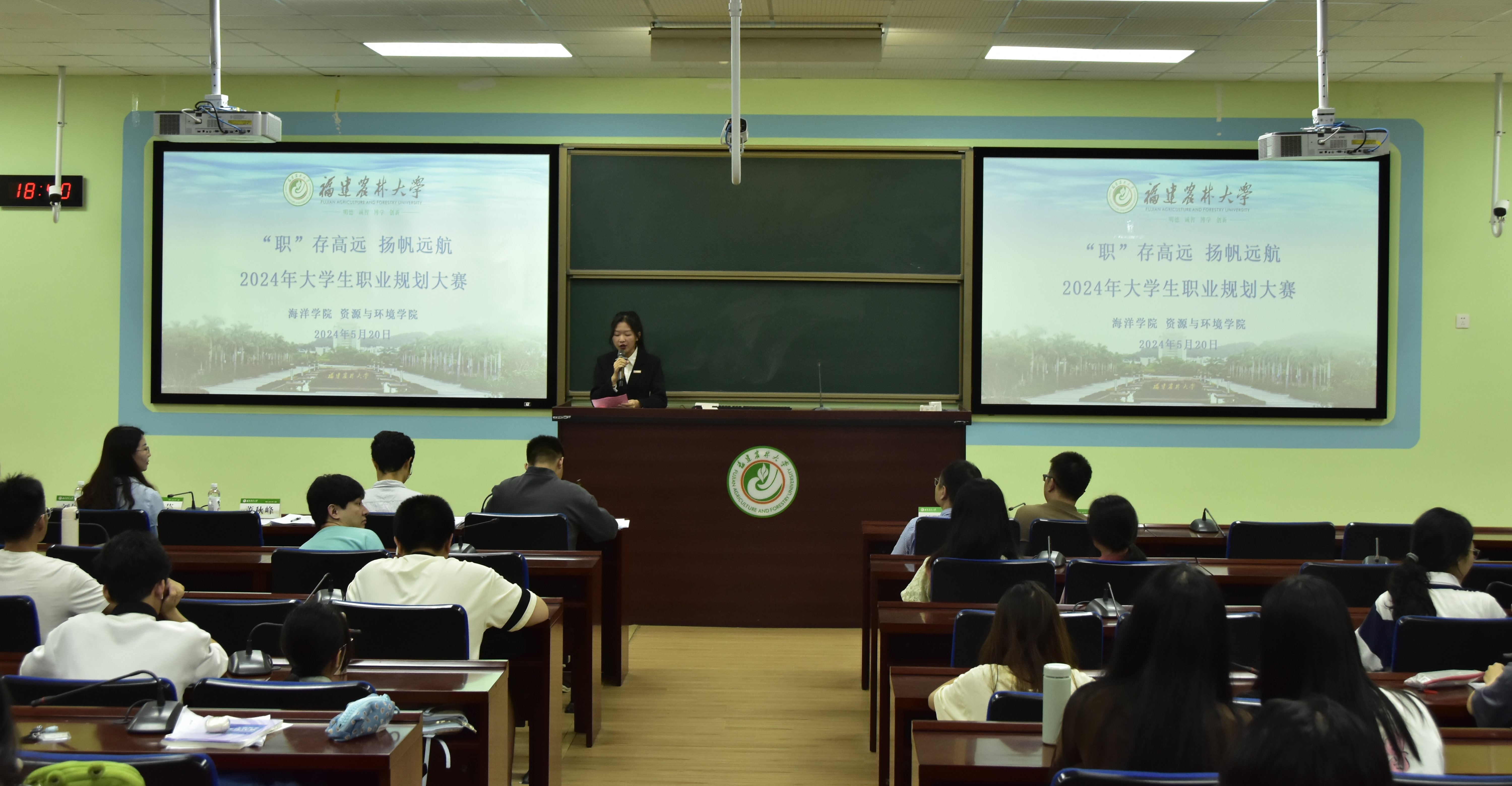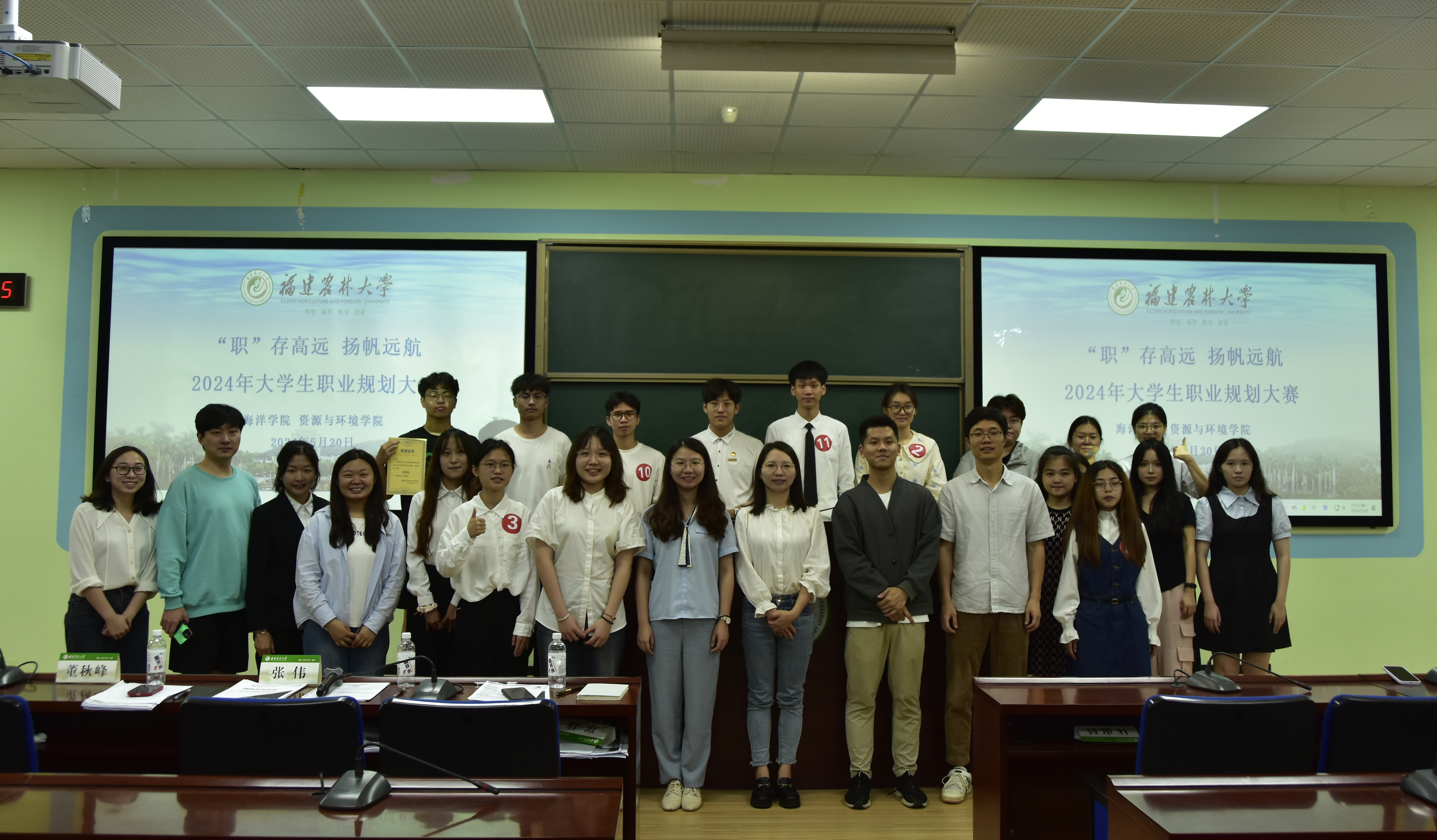 5月20日晚上,海洋学院联合资源与环境学院在禧强楼206举办以“‘职’存高远,扬帆远航”为主题的2024年大学生职业规划大赛。首届全国大学生职业生涯规划大赛优秀指导教师董秋峰、福建省高校就业创业指导教师刘芸、资源与环境学院辅导员张伟、海洋学院辅导员郑捷以及第十六届福建省大学生职业规划大赛银奖获得者、2021级环境工程专业刘钰洁同学担任评委。海洋学院党委副书记余建晖、资环学院党委副书记林惠科应邀出席,相关学院参赛选手和全体辅导员、各班级学生代表等共计100余人参加。