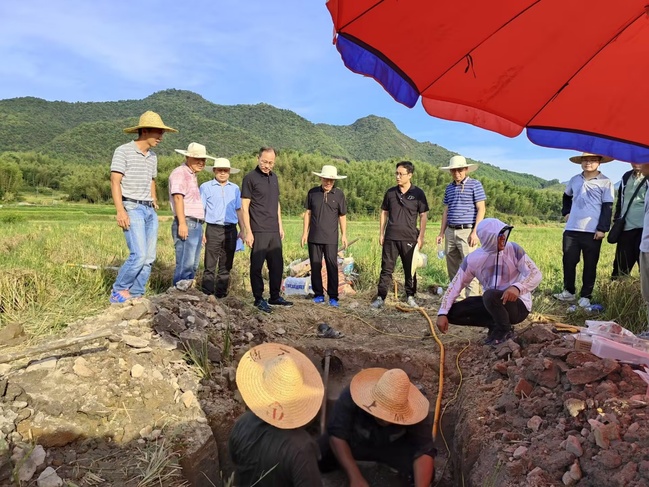 除了技术培训外,学院教职工躬身田间,实现全员下地、全员一线。2022年8月22日-23日,周顺桂教授率领专家到浦城县指导外业调查采样。“当时的气温达到了39度,野外基本没有树阴,烈日当空、两地奔波、大家没有一句怨言。”周顺桂教授回忆道。专家组一行先后到忠信镇外洋村、富岭镇瑞安村采样点,现场查看土壤剖面样的制备、土样采集、土壤类型校核、土壤图边界勾绘和土壤表层样采集等现场,并就剖面采样规程和采样中存在的问题与采样现场技术人员进行了详细的讨论,及时指导解决有关技术问题。学院师生放弃了休息时间,抓质量抢进度,战高温抢先机,既推动了试点县的外业调查,也为后续全省铺开外业调查采样提供了示范、探索了路径。
