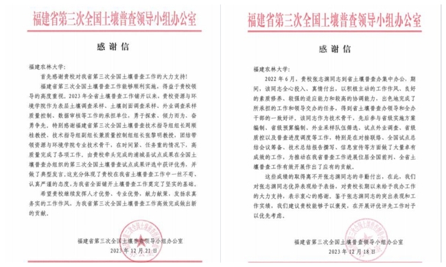 从2022年6月起,资源与环境学院师生立足农林高校专业优势,肩负起土壤普查重任,迄今共中标承担省“三普”类项目40多个,累计经费9215万。承建的福建省土壤标本馆已完成主体建设,拟存放土壤各类样品60000多个(件),建成后将成为我省土壤样品最全面、土壤信息最全面、土壤学科最专业的样品库。资源与环境学院师生付出的努力受到了相关部门的高度肯定,学院代表福建省在全国“三普”相关会议上作典型发言及受省“三普”工作领导小组发函致谢共10余次。