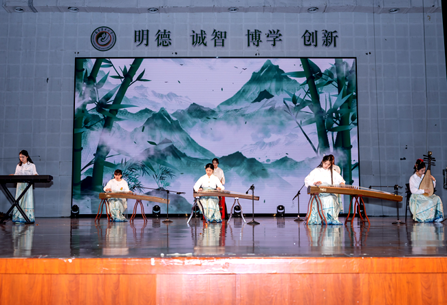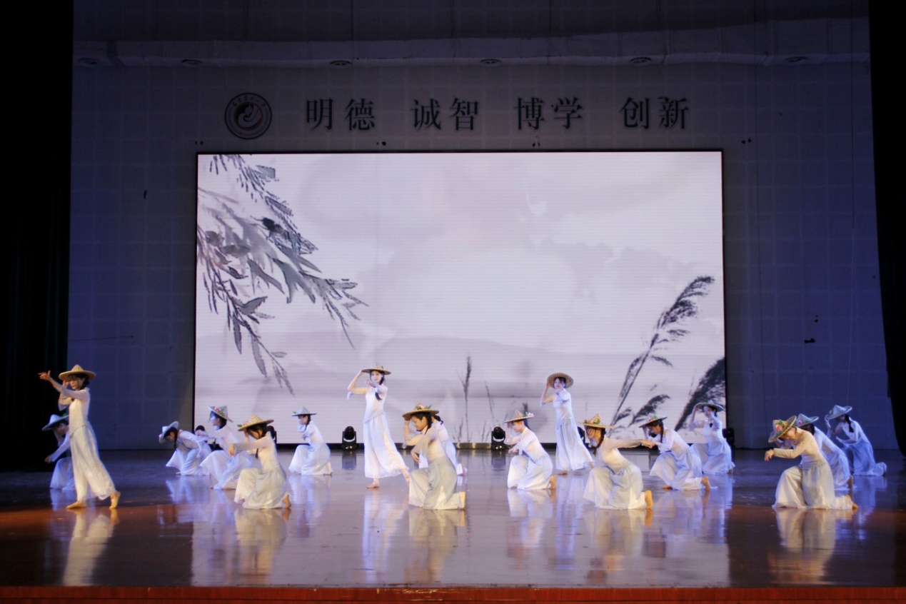 舞台之上,光影交错。走秀表演《茶韵千年》的雅致,陶笛独奏《美丽的神话》的悠远,舞蹈《你要跳舞吗》的热情,交织成一幅幅生动的青春画卷。随着节目推进,器乐表演《上春山》古筝轻拨,带领观众走近绿意盈目的春山;朗诵《在永不褪色的日子里》深情诉说,回望毕业生们如诗的青春岁月;群舞《响扇》舞蹈翩跹,一开一合中展现着芳华万卷。每一个音符、每一步舞姿,都是对青春最真挚的颂歌。