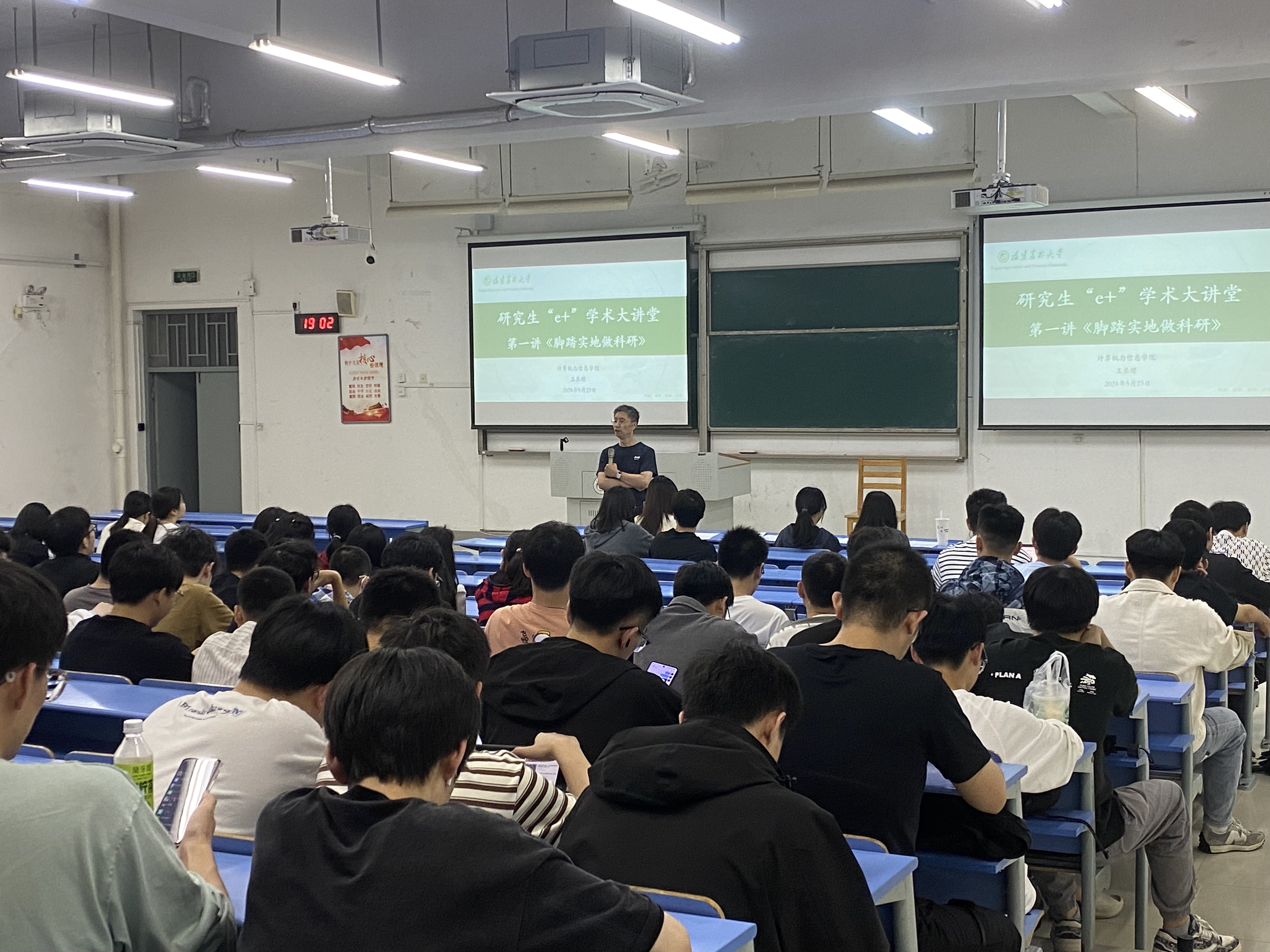 5月23日,计算机与信息学院举办“脚踏实地做科研”研究生“e+”学术大讲堂活动,本次学术讲堂邀请学院王长缨教授主讲,学院2022级、2023级全体研究生参加。
