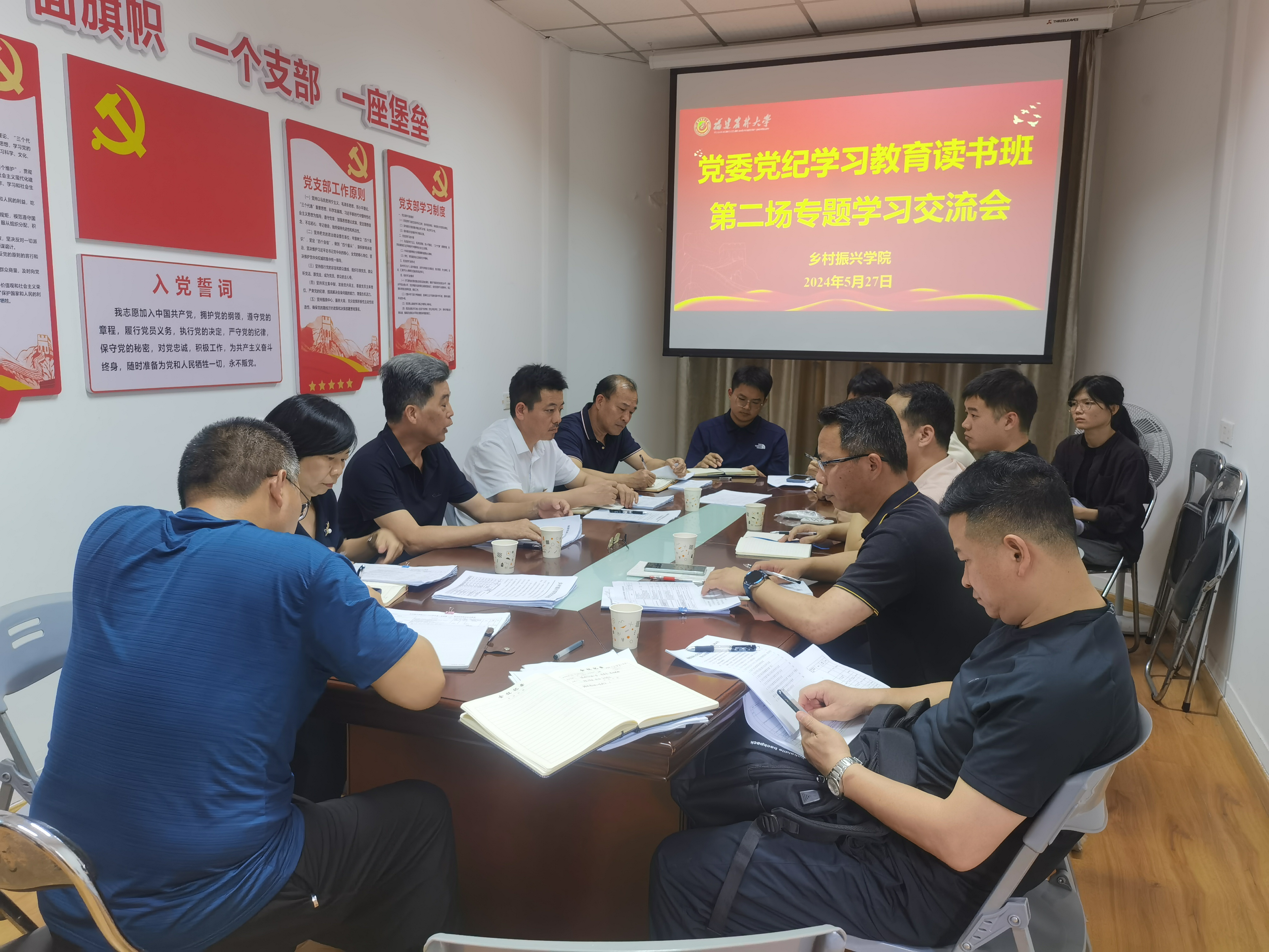 5月27日下午,乡村振兴学院党委在205会议室召开党纪学习教育读书班第二场专题学习交流会。学院党委理论学习中心组成员、工会主席、科级干部、辅导员、党支部书记、系主任等参加会议。会议由学院党委书记陈清西主持。