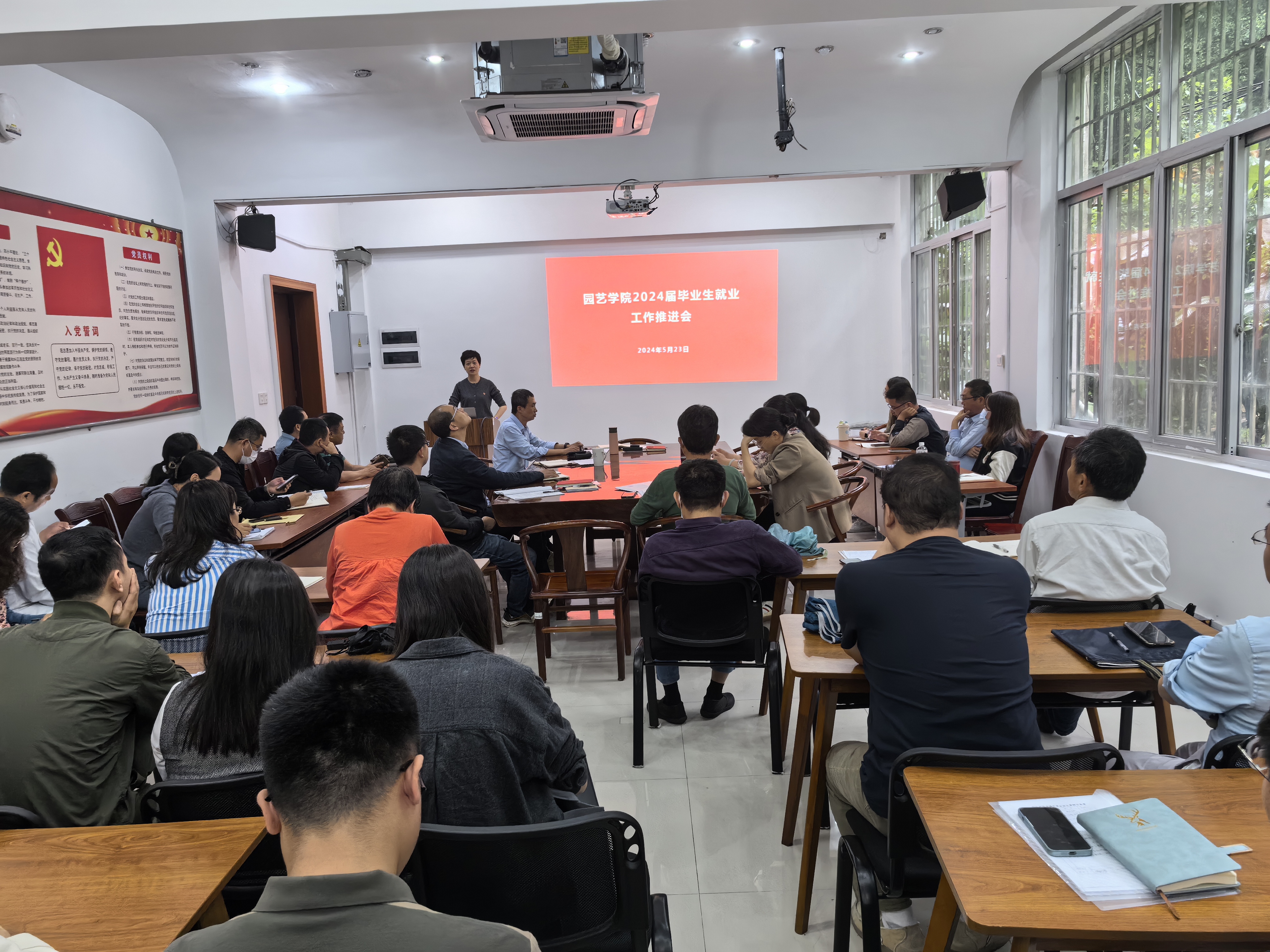 5月24日下午,园艺学院在一楼会议室召开2024届毕业生就业创业工作推进会,会议由学院党委书记余顺兴主持,学院全体教职工参加会议。