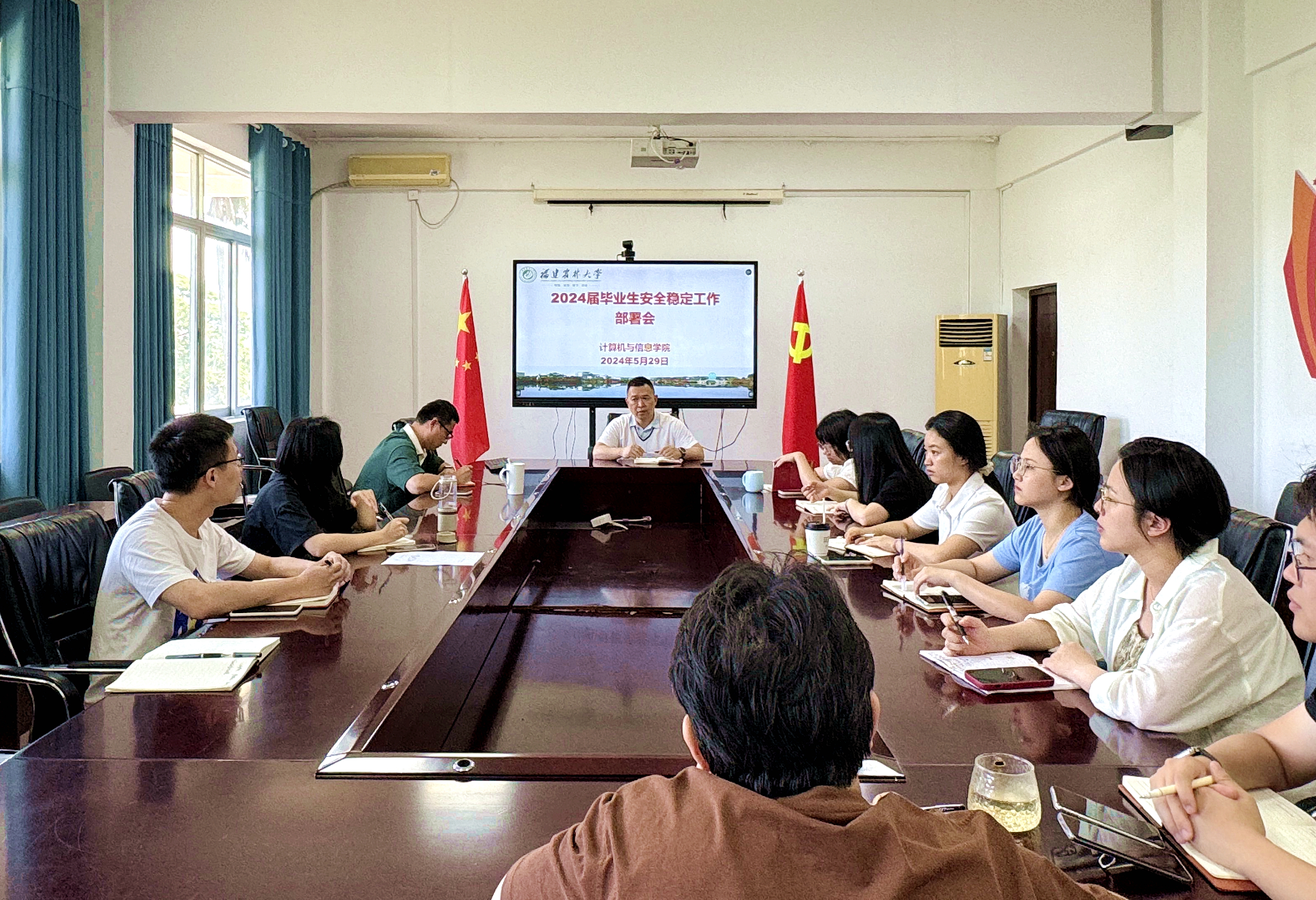 5月29日,计算机与信息学院在学院会议室召开2024届毕业生安全稳定工作部署会。学院全体辅导员参加会议,会议由学院党委副书记张明辉主持。