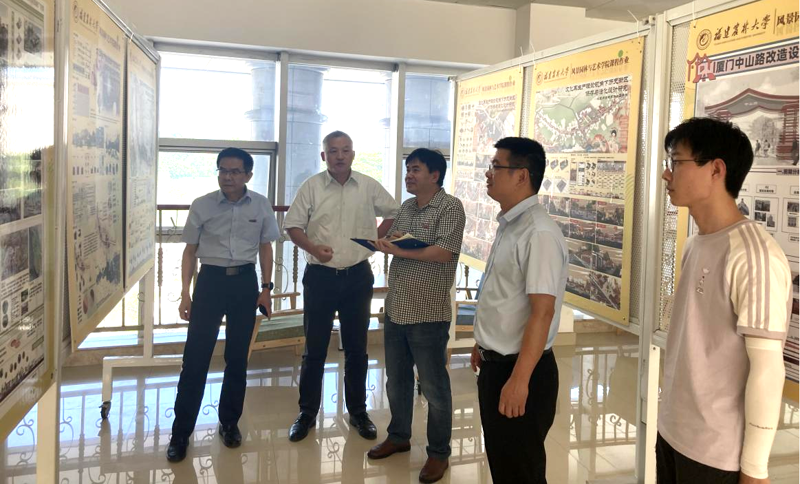 5月29日,2024届艺术设计研究生毕业设计作品展于旗山校区图书馆2楼展厅拉开帷幕,风景园林与艺术学院党委书记雷国铨,副院长(主持工作)彭东辉,设计学学科带头人、戴尔豪西大学联合学院(国际学院)院长陈祖建,学院副书记徐通明,副院长余坤勇和陈顺和以及专业教师与学生代表共同参观了展览。