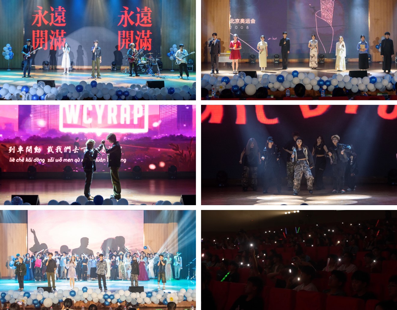 晚会在乐队演出《鲜花》中拉开序幕,青春张扬,热烈肆意,朗诵《风华》,回首过往峥嵘路,共同谱写新时代的华章。歌舞《下一段旅程》《再见再见》《最长的电影》《二十二》等,诉说着离别和不舍,表达着美好的祝愿。师生合唱《我们的明天》,祝福毕业生们毕业快乐,前程似锦,将晚会的气氛推向了最高潮。