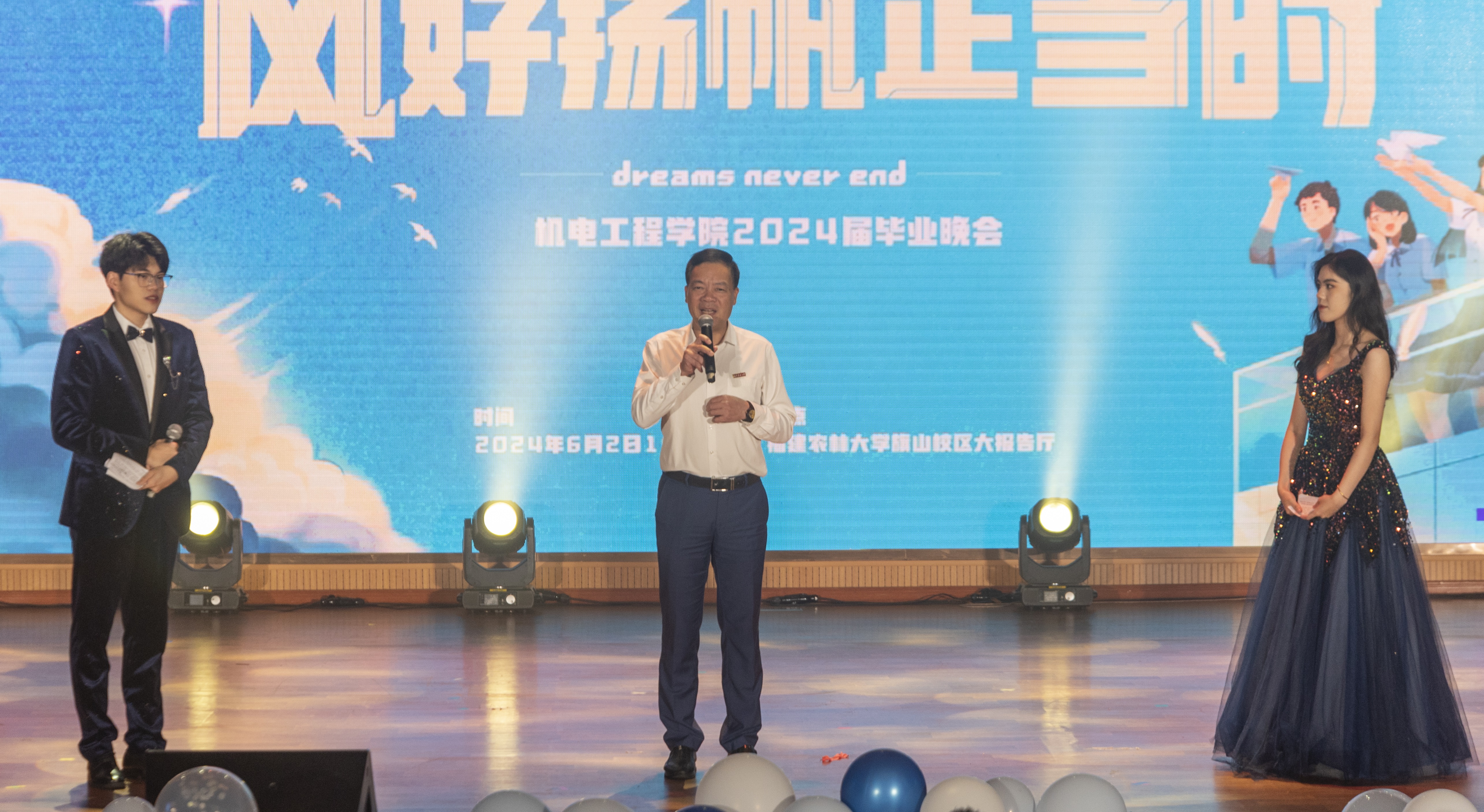 晚会上,学院党委书记陈为德为毕业生们送上了祝福,感谢毕业生们对学院的付出,愿大家前程似锦,万事顺意,幸福美满,这场精彩纷呈的晚会,既是对2024届毕业生最真挚的祝福,也是对青春最有力的寄语,为毕业生踏上新的人生旅程营造了温暖美好的气氛。
