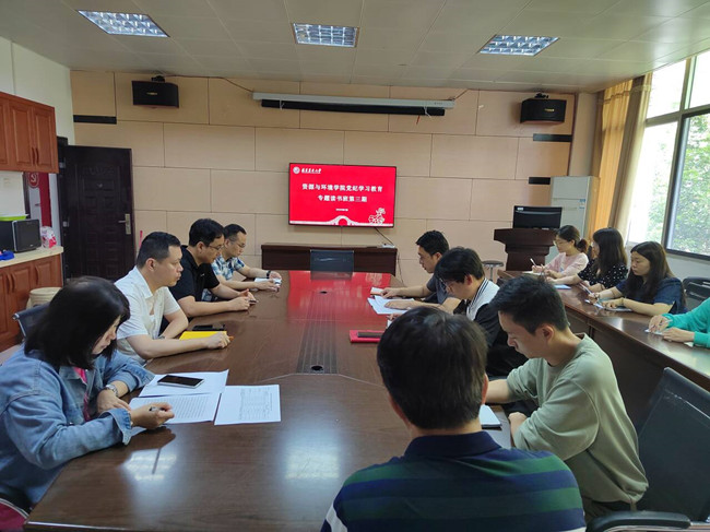 5月31日,资源与环境学院党委在博学楼210召开党纪学习教育读书班第三次专题学习交流会,就廉洁纪律进行专题学习,学院党政领导班子、党支部书记、科级干部、辅导员参加学习会。会议由学院党委书记童庆满主持。