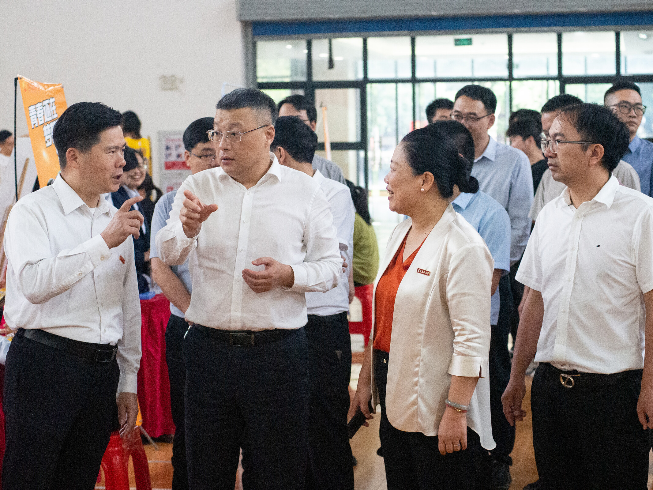 6月5日,由安溪茶学院(数字经济学院)和中共安溪县委人才工作领导小组办公室、安溪县人力资源和社会保障局、安溪县参内镇人民政府等单位联合主办,安溪县人才和就业服务中心、中国海峡人才市场安溪工作部和共青团开云网页版安溪茶学院委员会承办的2024年安溪县“书记县长送岗留才进校园”活动在安溪校区体育馆举办。安溪县委书记吴毓舟,县委常委、副县长黄汉阳,副县长洪天阳等领导莅临活动现场指导,安溪校区管委会、安溪茶学院(数字经济学院)领导陪同。
