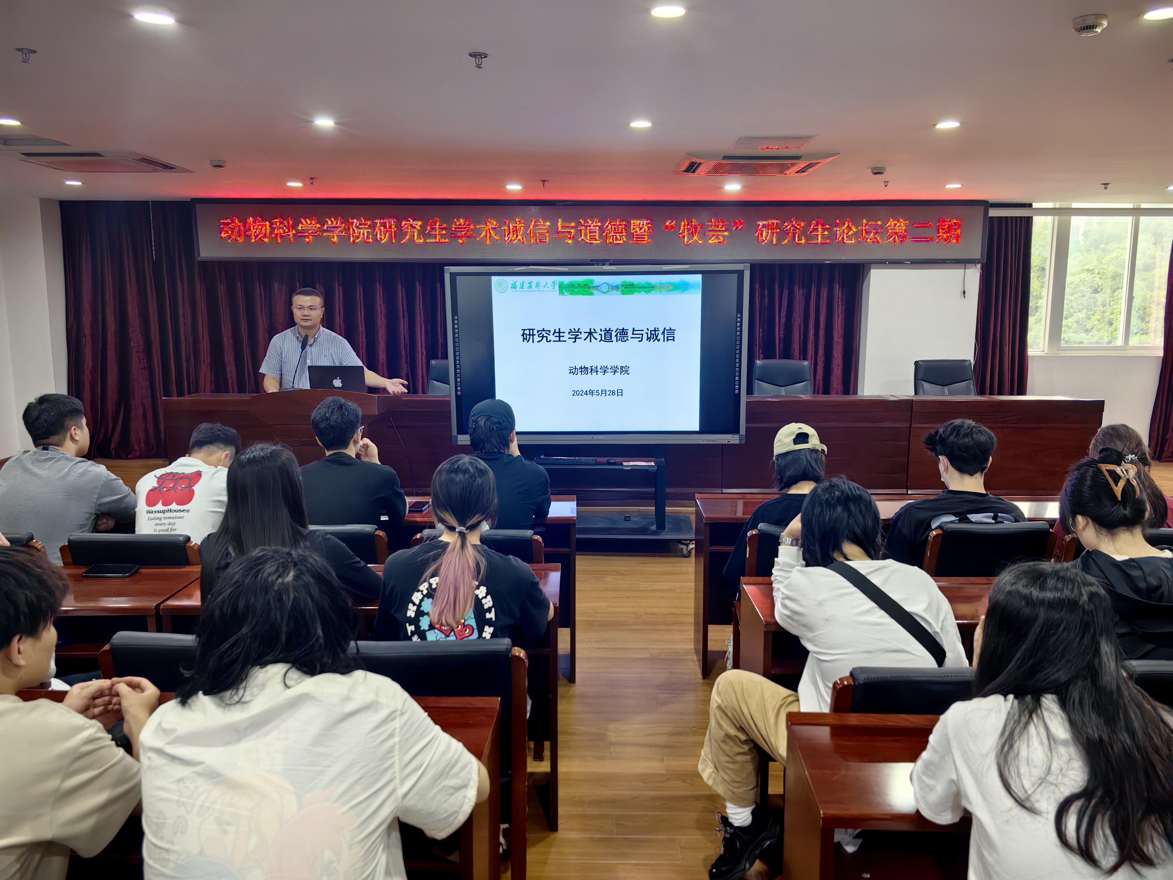 近日,动物科学学院第二期“牧芸”研究生论坛在学院七楼会议室举办。学院青年教师代表、研究生代表50余人参加。