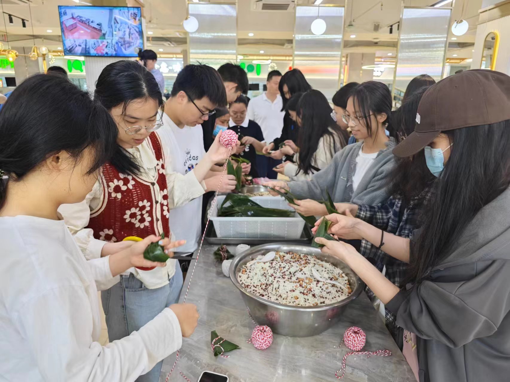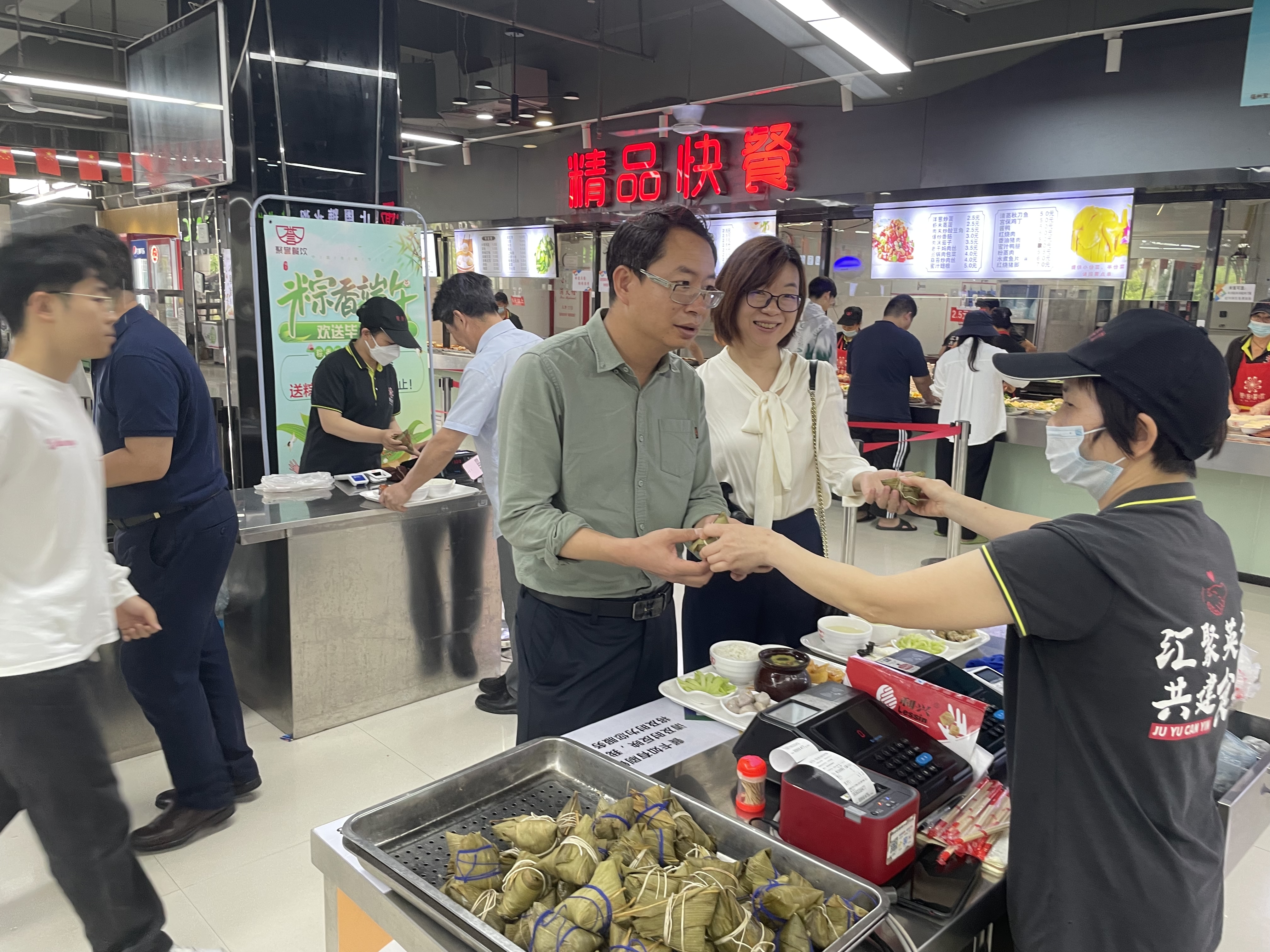 活动中,各校区食堂纷纷结合自身特点,开展了粽子、龙船饭等传统端午美食展示,彩绸、龙舟、五色丝线等端午主题装饰,粽子、香包、团扇、五彩绳等端午手工DIY,以及端午主题游园等丰富多彩的活动。师生员工们在温馨、和谐、快乐的氛围中,体验端午节丰富的文化内涵和中华优秀传统文化魅力。此外,各食堂还为所有就餐师生赠送端午节粽子32000多个。