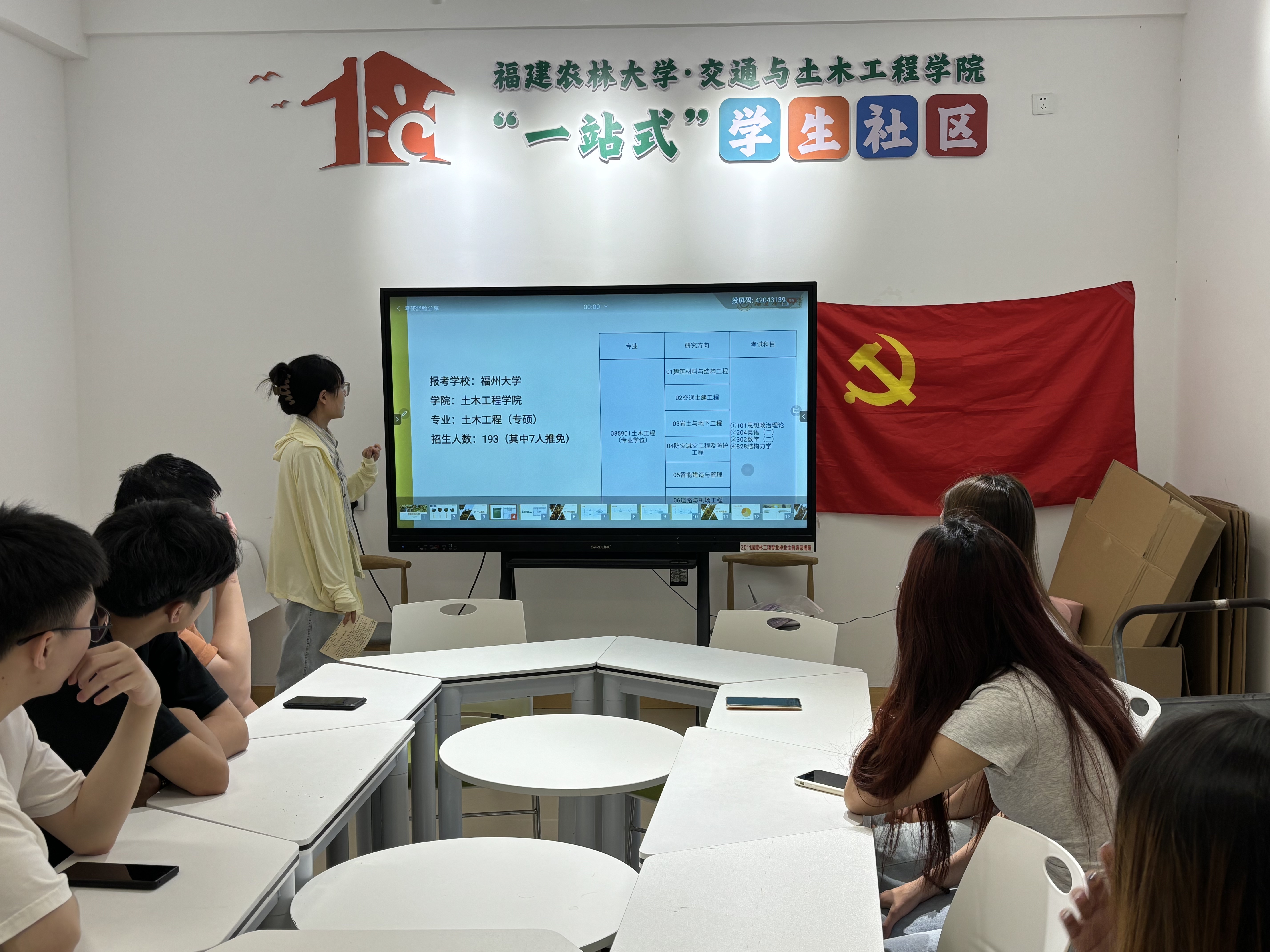 为充分发挥党员的先锋模范作用,帮助支部党员明确前进方向,近日,交通与土木工程学院工程管理学生党支部在学院一站式学生社区开展考公考研成功经验分享会。