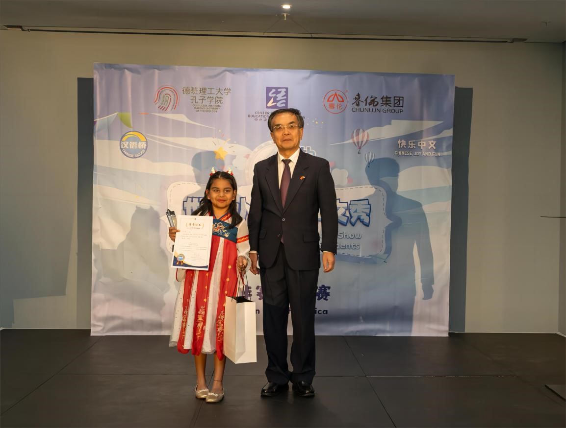 据悉,本次“汉语桥”世界小学生中文秀南非区决赛由中国驻南非大使馆、教育部语合中心主办,我校德班理工大学孔子学院承办,本届比赛以“快乐中文(Chinese, Joy and Fun)”为主题,共分为主题演讲和才艺展示两部分。