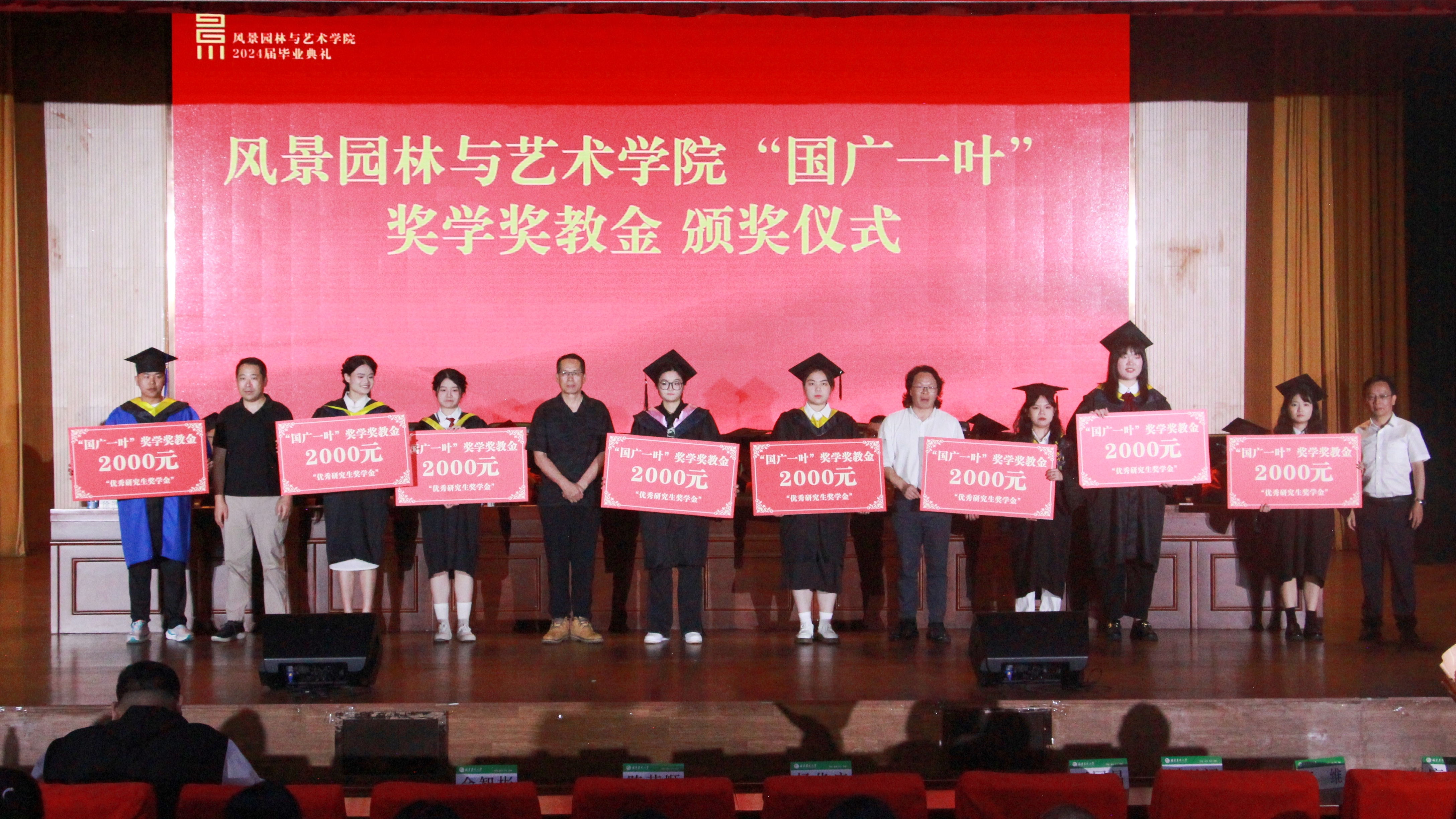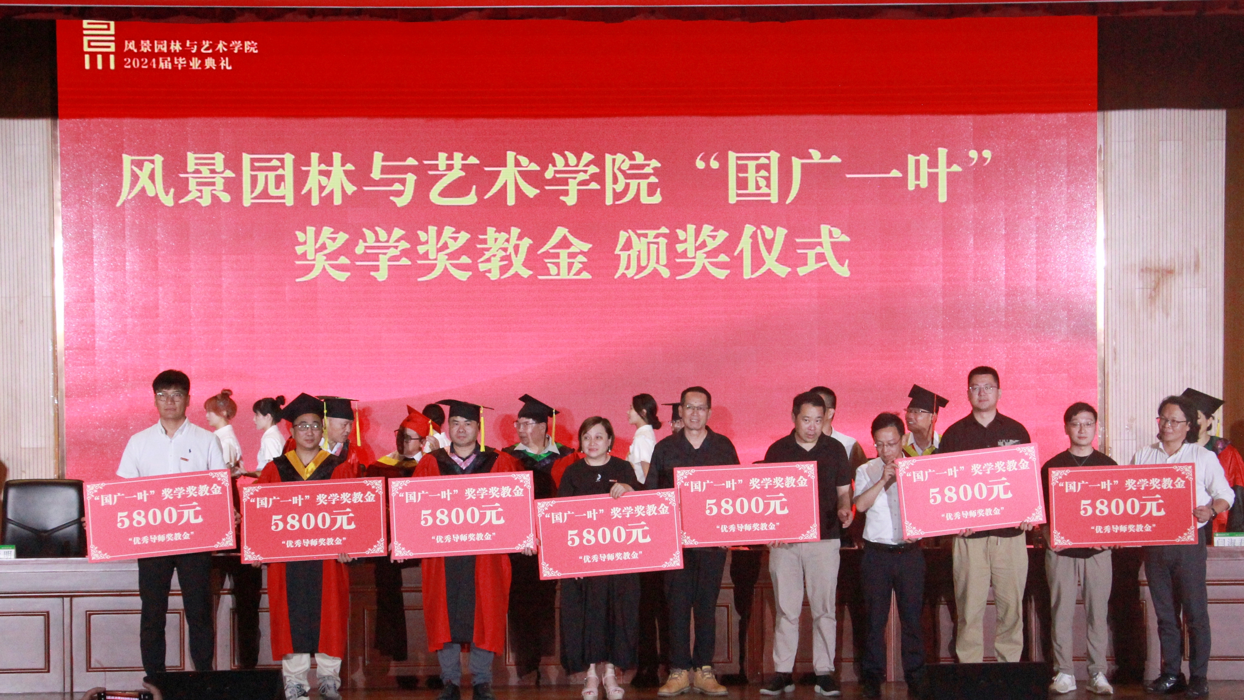 福建国广一叶建筑装饰设计工程有限公司在风景园林与艺术学院设立“国广一叶奖学奖教基金”200万元。根据捐赠者叶斌先生的意愿,奖学奖教金主要用于奖励开云网页版风景园林与艺术学院在学业上取得优异成绩的学子和在教学教研工作中做出突出贡献、师德师风良好的教师。2024年发放20万元,20名2023级福建高考优秀考生,41名考上985、211及保送本校的2024届应届毕业生,10名优秀导师获得奖励。