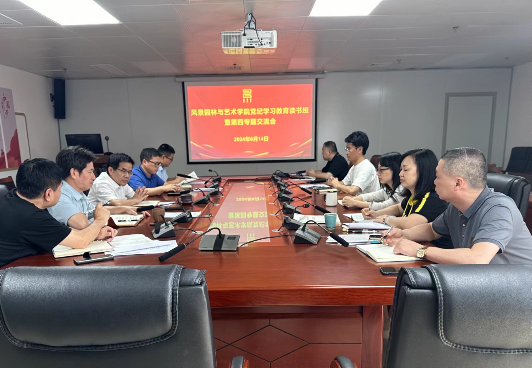 6月14日,风景园林与艺术学院党委党纪学习教育读书班第四次专题学习交流会在旗山校区综合楼1102-4举行;会议由院党委书记雷国铨主持,学院党政领导,党委委员参加了会议,科级干部列席。