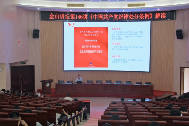 6月12日下午,中共福建省委党校副教授、英国牛津大学访问学者郑济洲应邀做客我校金山讲坛第146讲,在博学报告厅为我校师生作了题为“《中国共产党纪律处分条例》解读”的讲座,260名师生到场聆听。