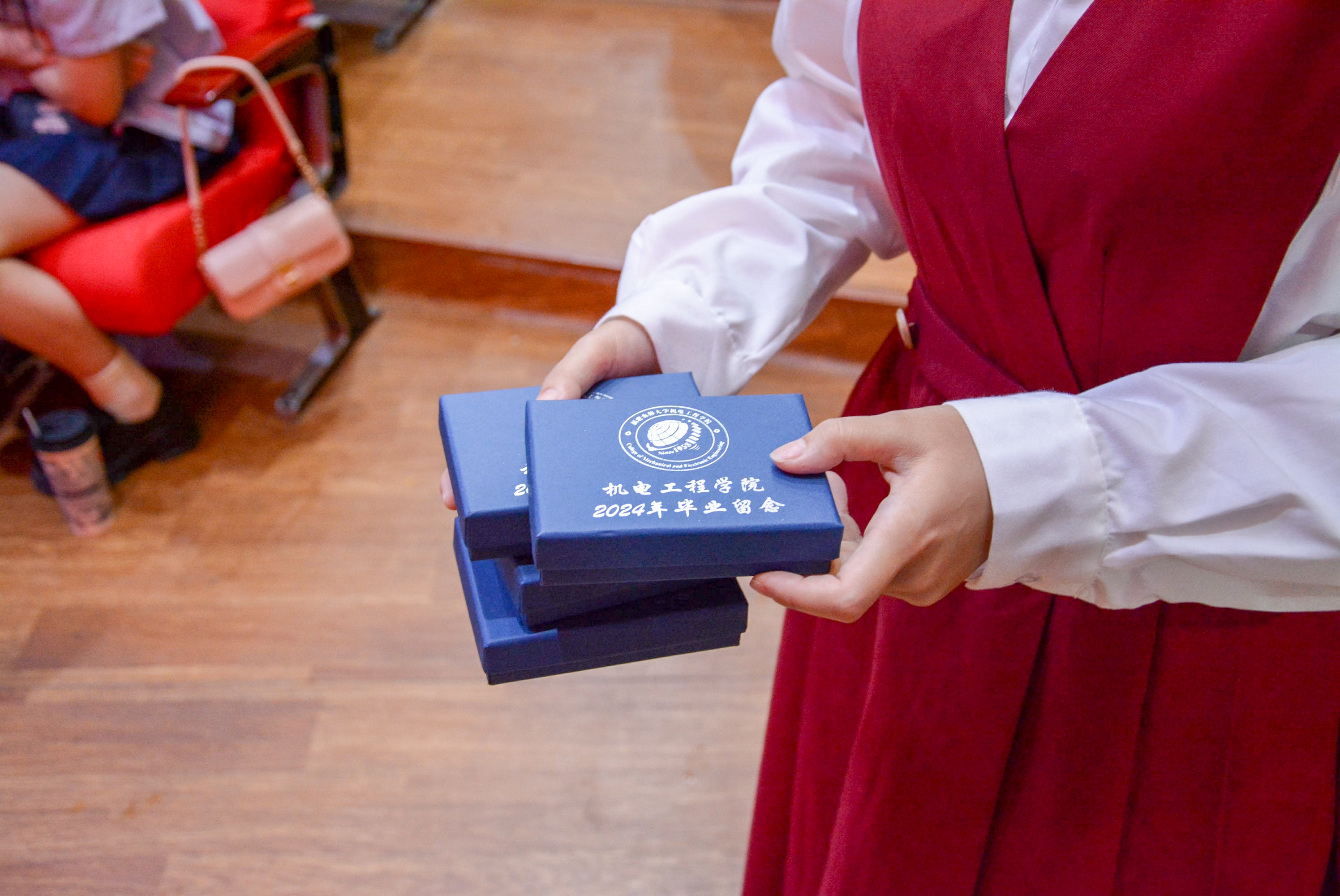 在校生代表韩晨荣同学向学长学姐们献上最诚挚的祝福和敬意,祝愿他们未来的旅途一帆风顺,书写出属于自己的辉煌篇章,以实际行动践行求真务实、精匠至善的机电精神。