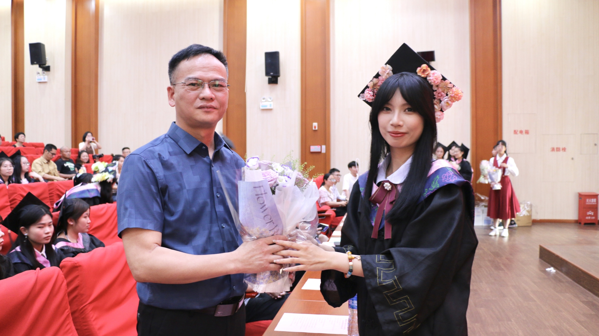 随后,2024届英语专业林颖仪同学、2021级英语专业董嘉明同学、校友代表2009届英语专业林珊女士、2024届英语专业郭若霖同学的父亲郭锦火先生、教师代表黄发锋老师先后在毕业典礼上发言,祝愿毕业生前程似锦,未来可期。