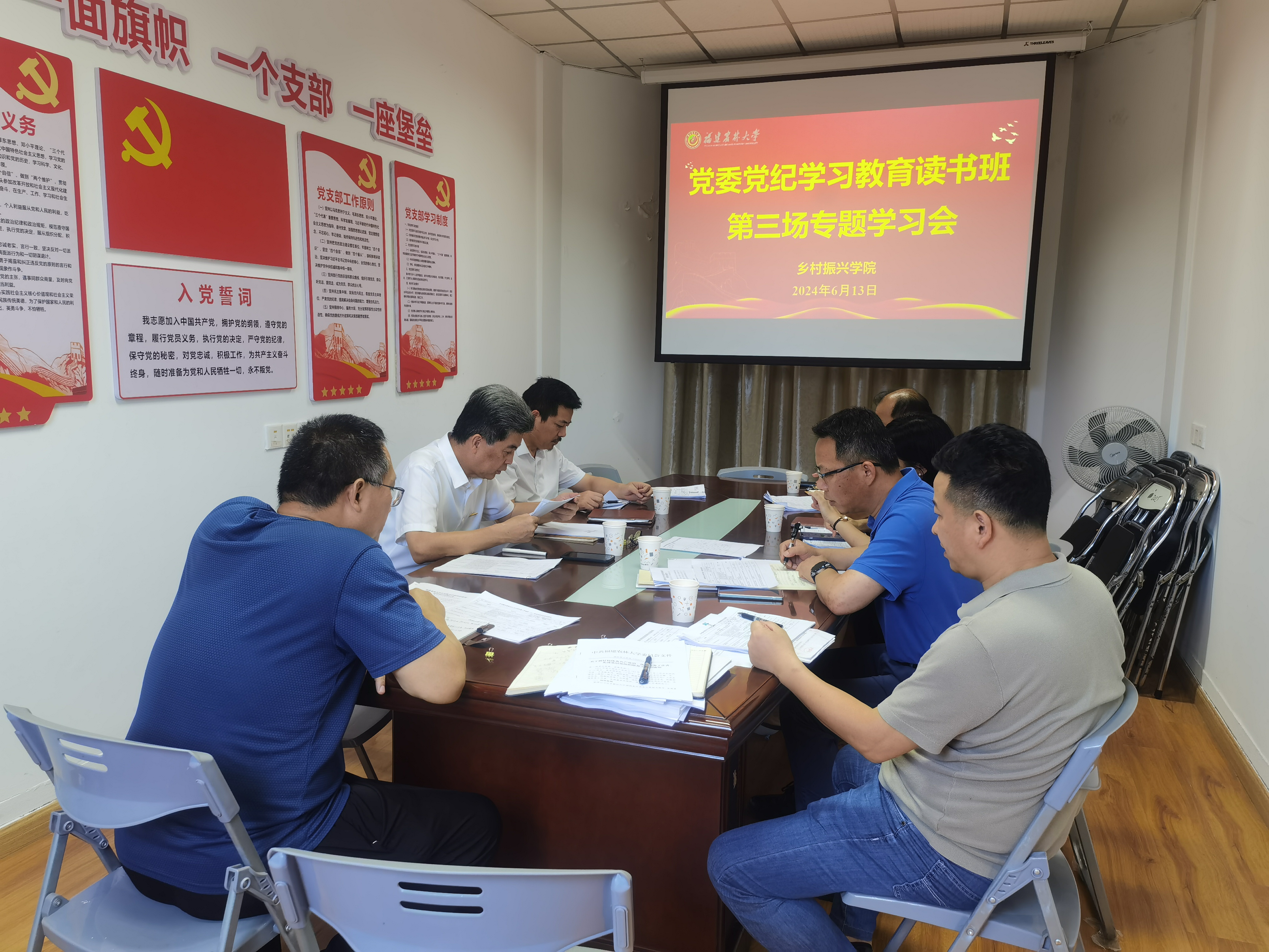 6月13日下午,乡村振兴学院党委在205会议室召开党纪学习教育读书班第三场专题学习交流会。学院党委理论学习中心组成员、工会主席、科级干部等参加会议。会议由学院党委书记陈清西主持。