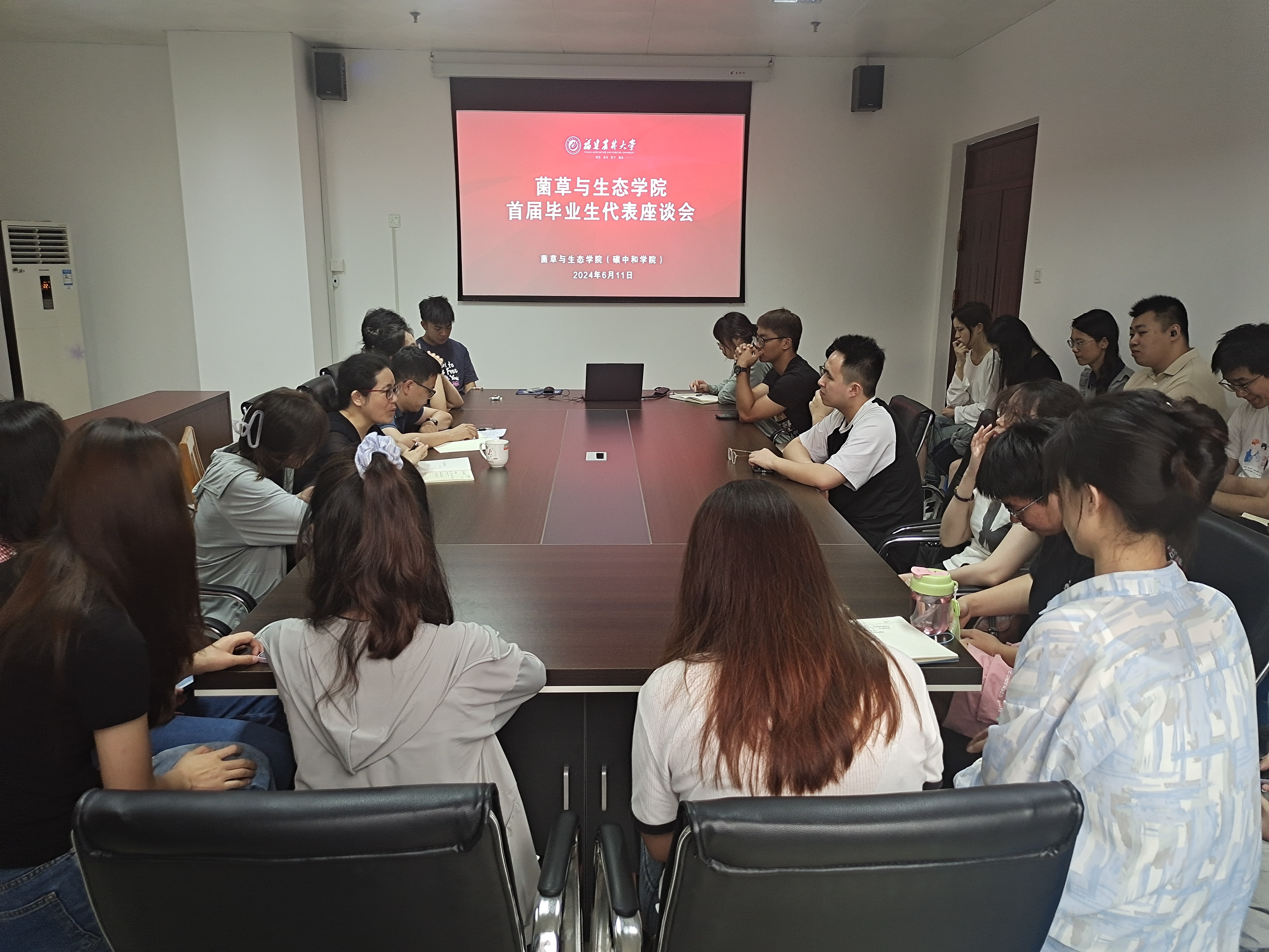6月11日,菌草与生态学院在下安综合楼A401召开首届毕业生代表座谈会。主持学院党委工作的陈月霄、党委副书记李晓辉、毕业班辅导员、2024届毕业生代表近30人参加会议。