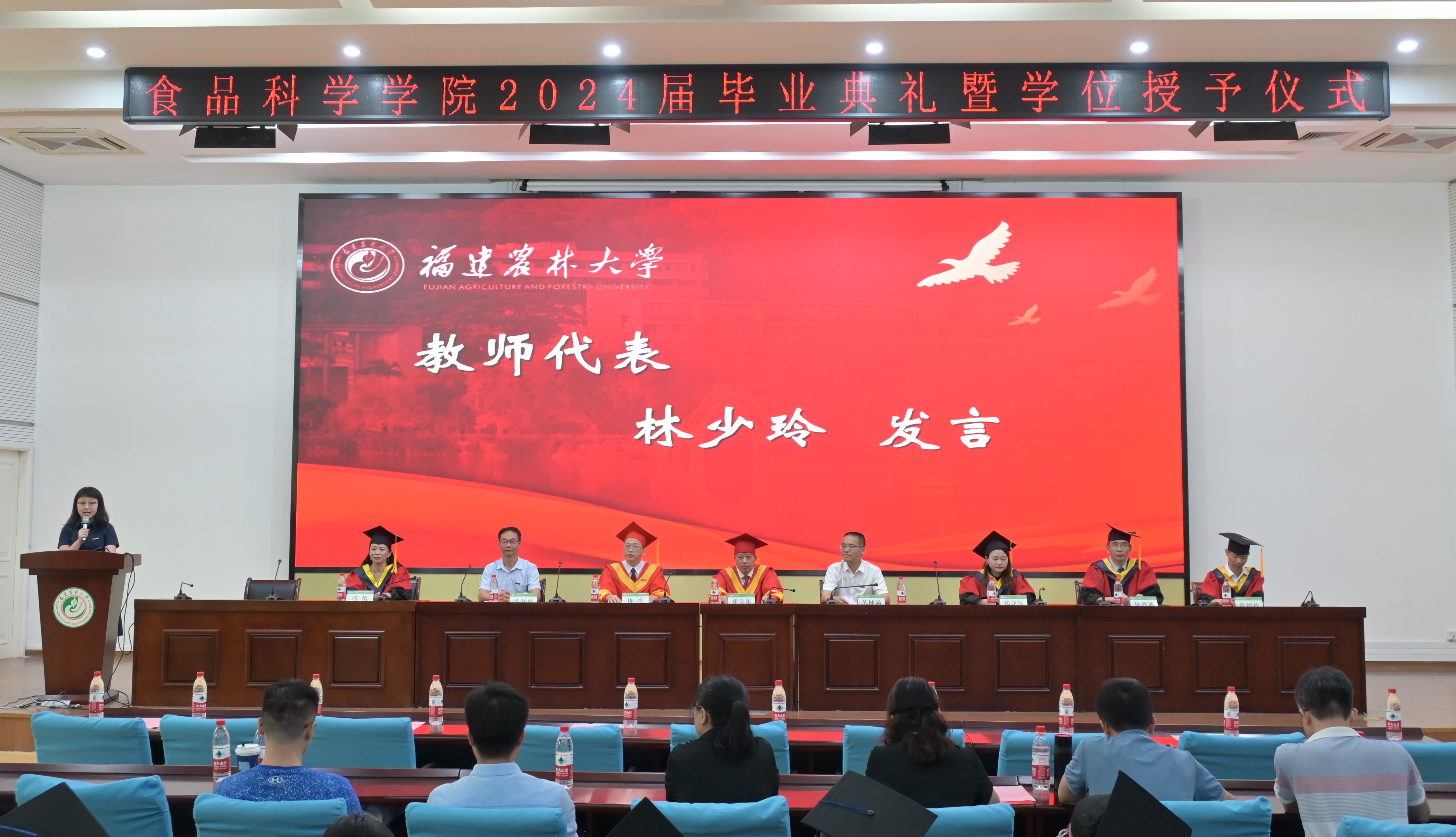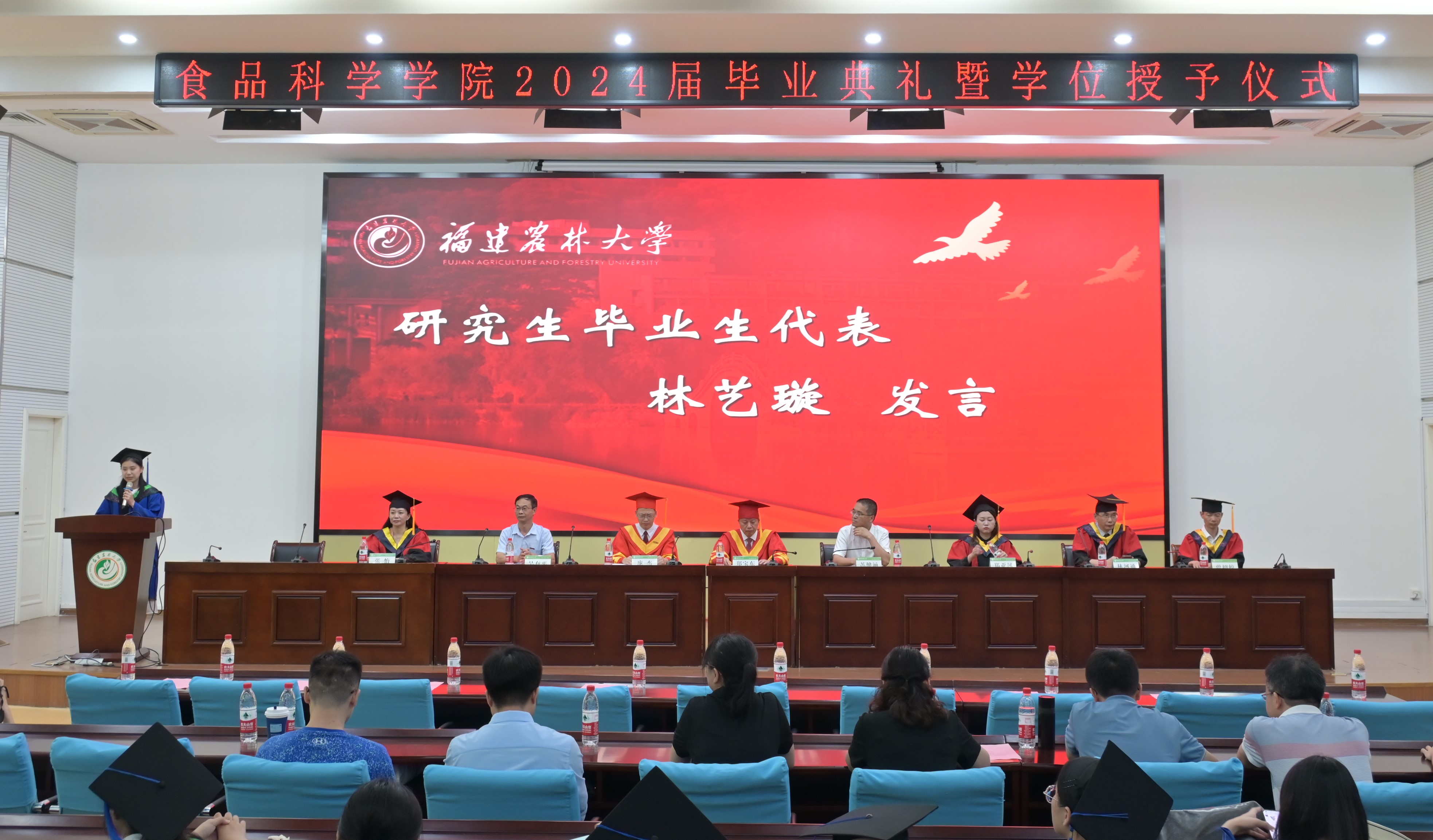 2021级食品加工与安全林艺璇、2020级食品质量与安全傅志杰分别代表研究生、本科生作毕业发言。他们回忆了求学经历,向未来寄予了新的期待,表示将在今后道路上秉承校训、努力奋斗、为校争光。2021级食品质量与安全林钰莹代表在校生发言,祝愿毕业学长学姐们毕业快乐,并将继续坚定理想信念,踔厉奋发,奋勇向前。教师代表林少玲对毕业生表达了热烈祝贺,并送上祝福,希望同学们在离校后,努力在各自的位置上取得进步和成功。