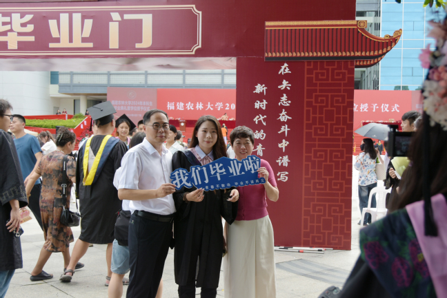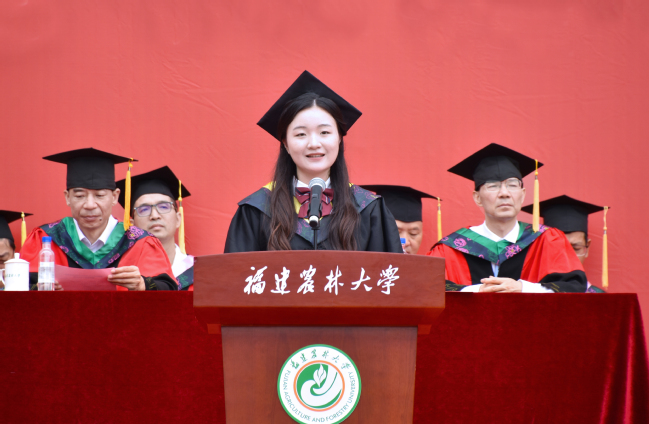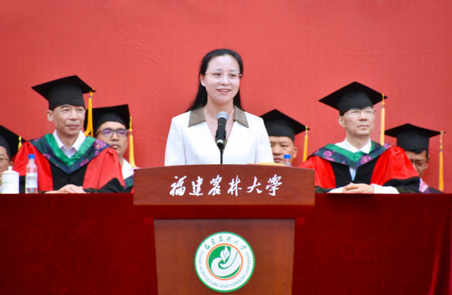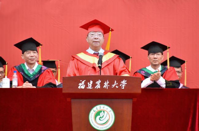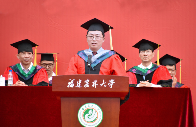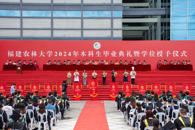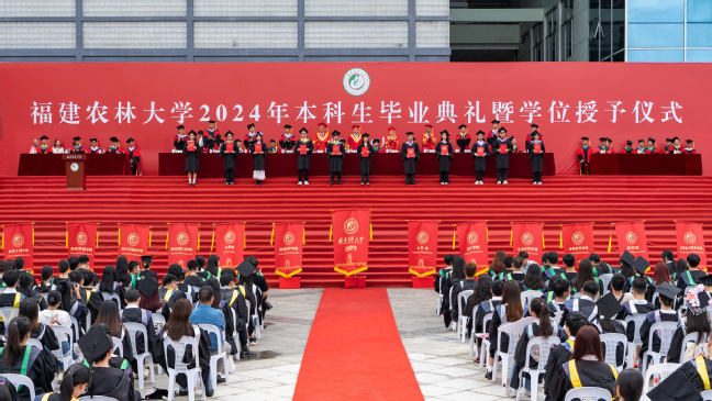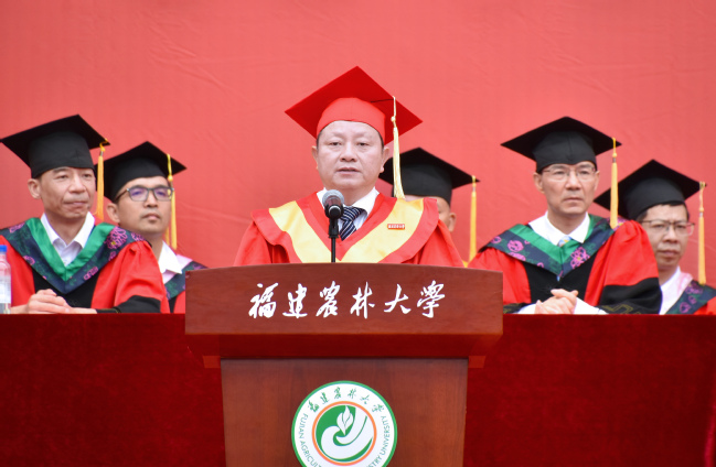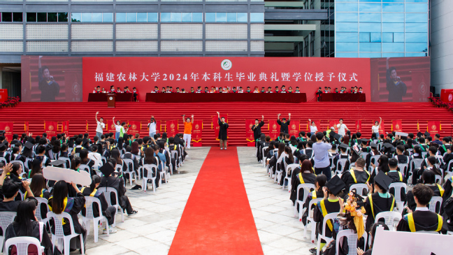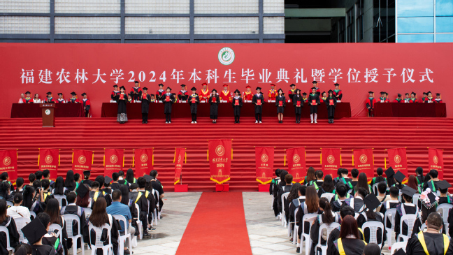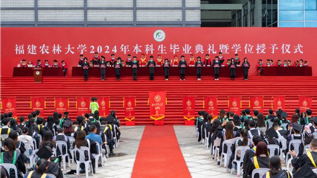 兰思仁代表学校向2024届本科毕业生表示热烈祝贺,向全体老师、家长和社会各届表示衷心感谢。他表示,四年来,同学们亲历和见证了学校的蒸蒸日上与快速发展。全体教职员工也共同见证了同学们由青涩少年到自信青年的成长和蜕变。他强调,当前我国正在以中国式现代化全面推进强国建设和民族复兴伟业,希望广大毕业生要牢记习近平总书记五四重要寄语,奋力书写为中国式现代化挺膺担当的青春篇章。一要心怀家国,做矢志报国的奋斗者。传承弘扬农林大先贤立志强农报国、献身农教事业的精神传统,把自己的理想同祖国的前途、把自己的人生同民族的命运紧紧联系在一起,在奉献国家中实现自己人生的价值。二要自信自强,做刚健有为的实干者。起而行之、久久为功,从最平凡的岗位干起,认认真真做好每一件小事,踏踏实实完成每一个任务,把每项工作都当作一份事业来完成,用实干创造精彩人生。三要敢为人先,做追求卓越的开拓者。发扬福建人“敢为人先,爱拼会赢”的进取精神,敢于打破固有思维局限,勇敢拓展人生的无限可能,不断超越自己极限,创造卓越成绩。四要脚踏实地,做扎根基层的奉献者。主动投身到基层去锻炼,在基层经风雨、见世面、接地气、长才干,成为基层需要、时代需要、人民需要的栋梁之才。
