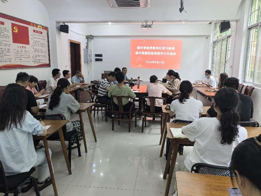 6月13日下午,园艺学院党委在学院会议室举行党纪学习教育读书班第四场专题交流会,专题学习工作纪律。会议由学院党委书记余顺兴主持,学院党委委员、纪委委员、党支部书记、科级干部参加学习。