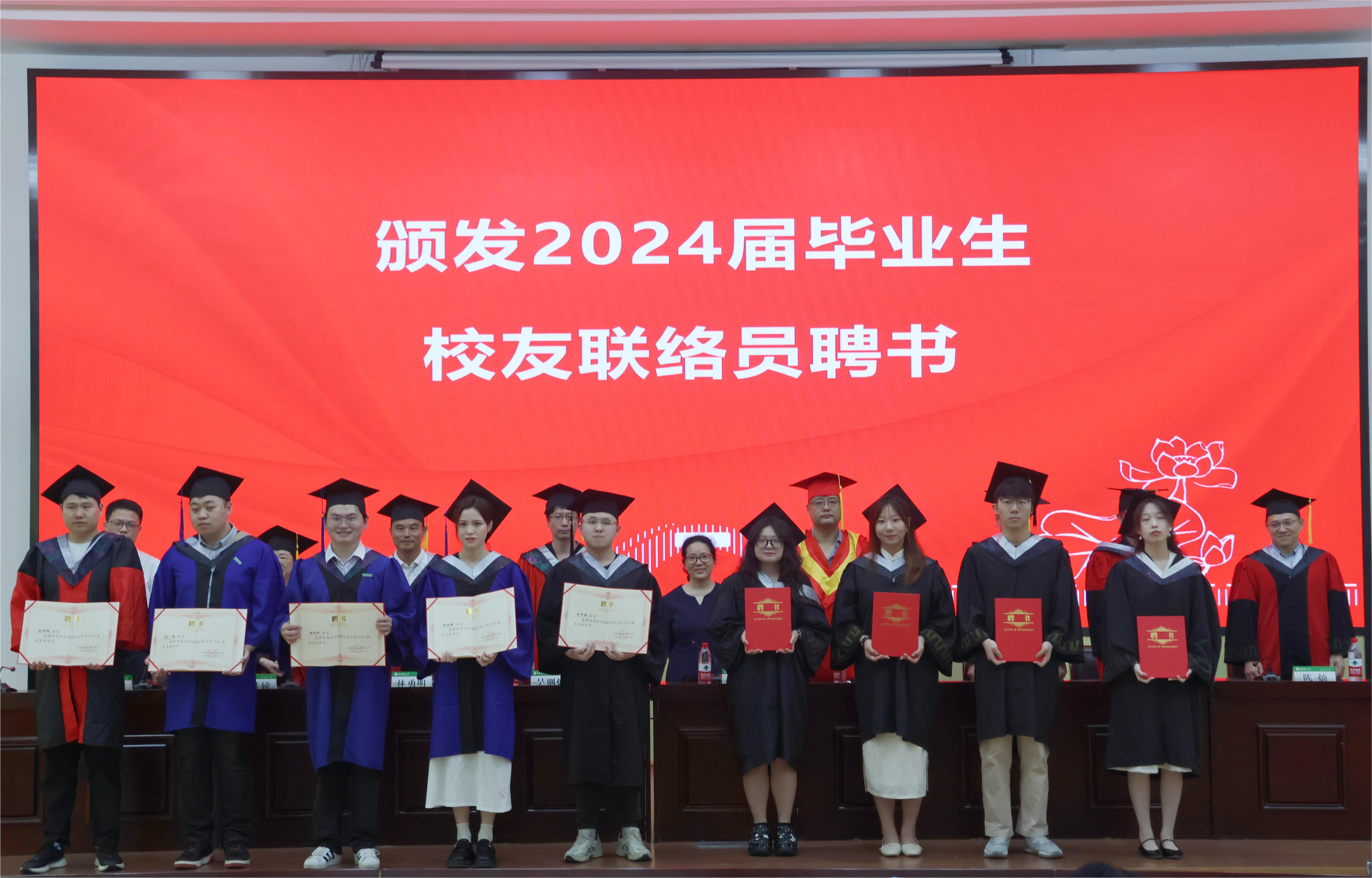 毕业典礼还宣读了推荐学校表彰的2024届优秀毕业生名单、宣读了校友联络员名单并颁发聘书。