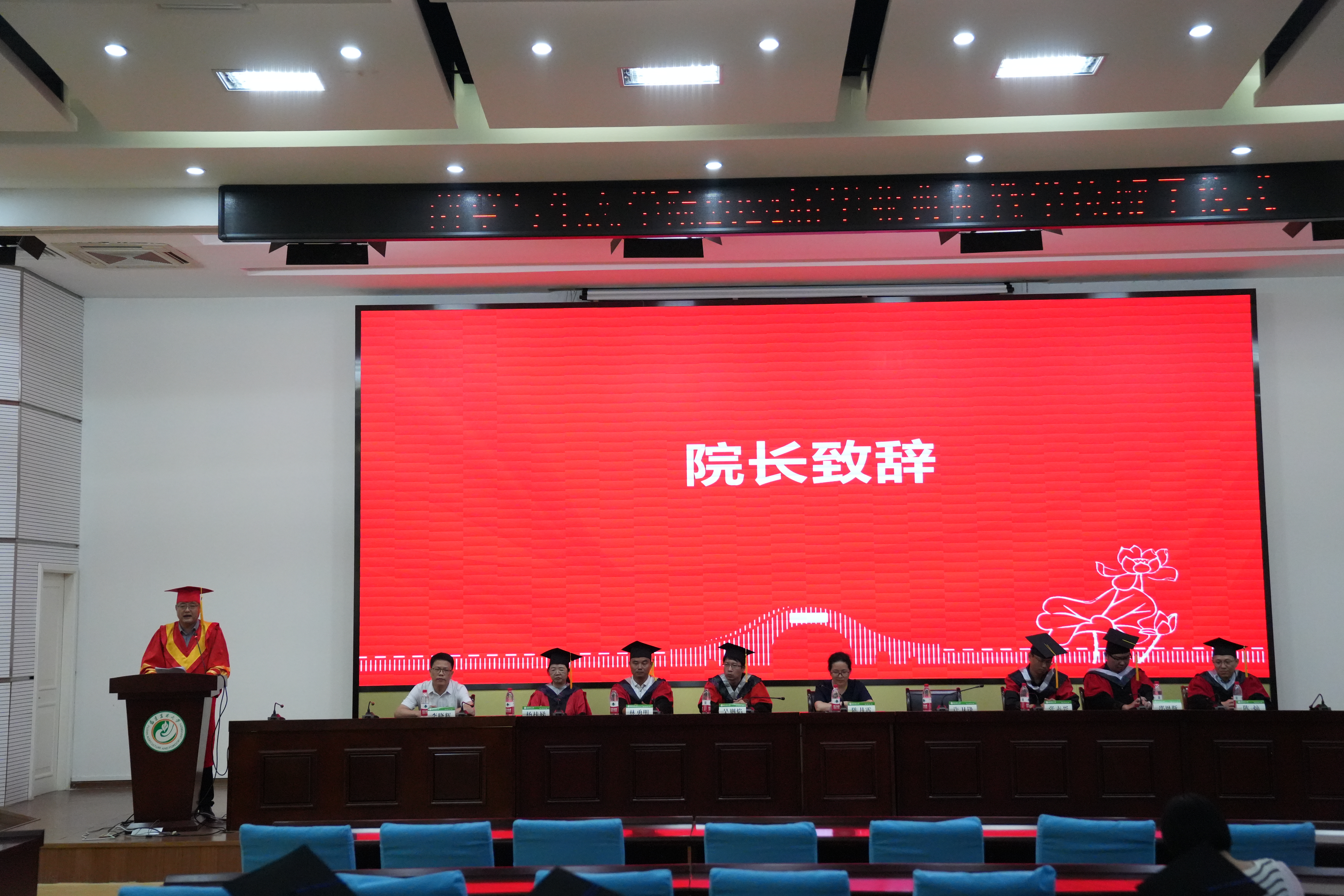 毕业典礼在庄严雄壮的国歌声中拉开帷幕。