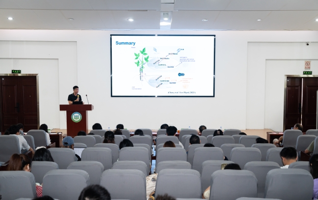 在活动现场,6位硕博士研究生聚焦种业创新、农业人工智能等交叉学科、关键核心技术,着眼热带亚热带植物生产实践的重大问题,分别以应用高通量单细胞转录组揭示拟南芥雌性生殖系细胞分化轨迹、生长素转运蛋白PIN3在介导大豆铺板细胞氮素吸收与种子质量中的功能和基于太赫兹光谱的生化物质传感研究为主要内容,与大家分享交流各自的研究成果,精彩的阐述、讲解不仅开拓大家的学术视野,更为大家呈现了一场高水平的学术盛宴。