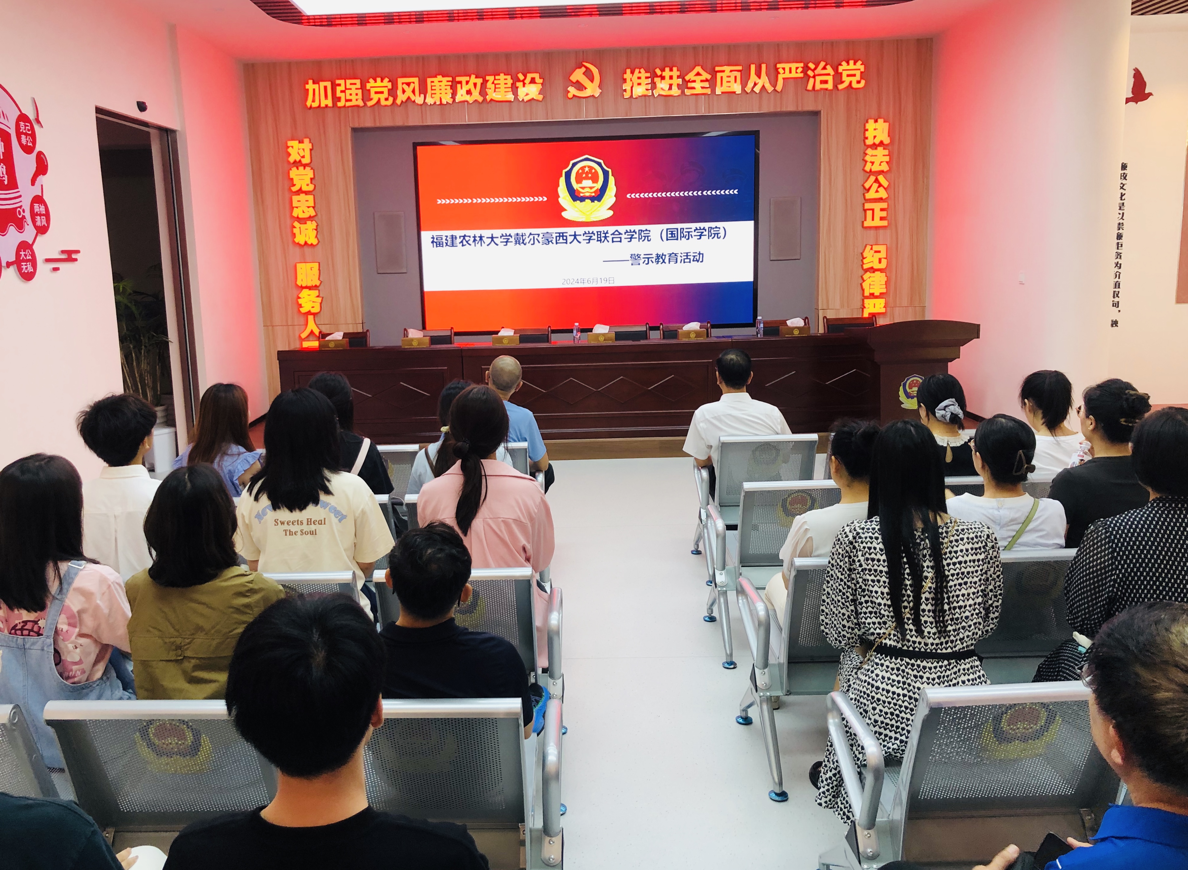 为深入学习贯彻落实习近平总书记关于全面加强党的纪律建设的重要论述,推动党纪学习教育走深走实,6月19日下午,戴尔豪西大学联合学院党委组织学院党员领导干部、党支部委员、科级干部及学生党员代表等20余人赴闽江监狱开展党纪学习教育现场教学活动,进一步增强党员领导干部、师生党员的纪律规矩意识,筑牢拒腐防变思想防线。