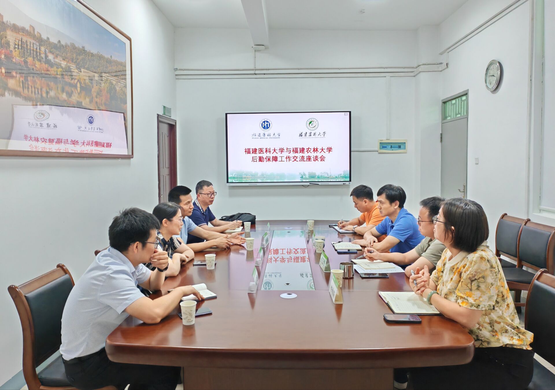 6月17日,福建医科大学国资处处长黄朝新一行4人到后勤管理处调研交流后勤保障有关工作。后勤管理处处长刘胜、副处长卢宏伟及相关科室负责同志参加交流座谈。