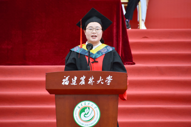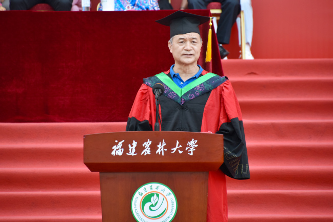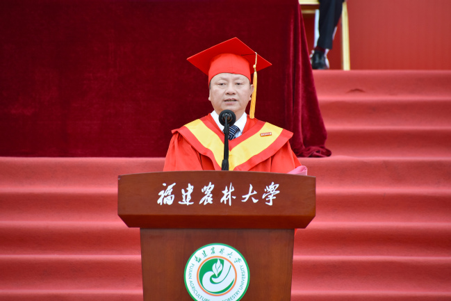 闽台作物有害生物生态防控国家重点实验室主任、植物保护学院李毅教授作为研究生导师代表发言。他表示,所有付出都是一种沉淀,所有美好终会如期而至。希望毕业生们准备好一颗坚定的心、坚韧的心和坚守的心,在强国建设中绽放青春光彩,在中国式现代化道路上书写青春篇章。