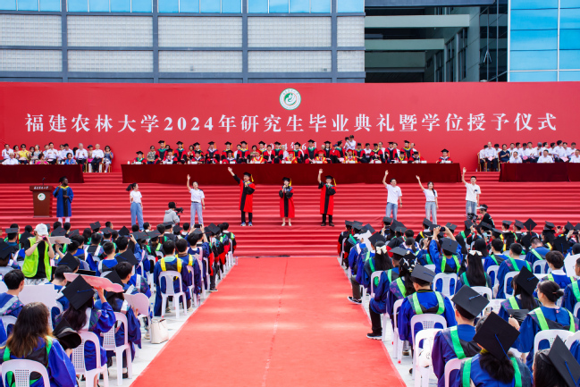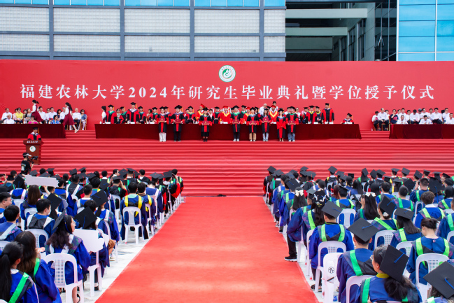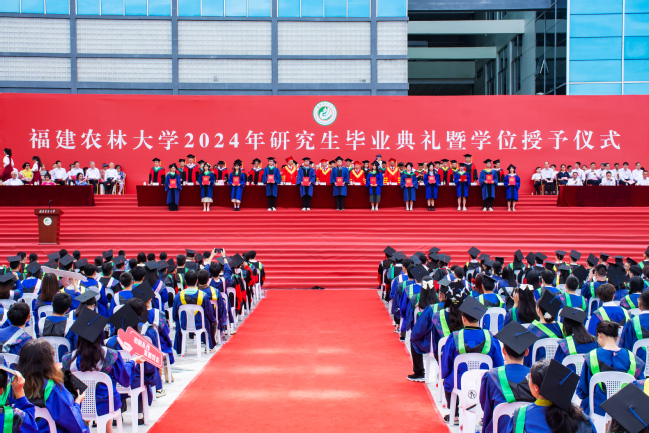 毕业典礼上,郑宝东宣读了《关于授予2023年下半年和2024年上半年博士、硕士学位的决定》,曾华平宣读了《关于表彰2024届优秀毕业生的决定》。校领导、谢联辉院士、谢华安院士、李常盛博士依次为博士毕业生和硕士毕业生代表扶正流苏、颁发学位证书,为2024届研究生优秀毕业生代表颁发荣誉证书,为研究生毕业生校友联络员代表颁发聘书。