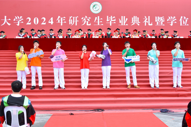 兰思仁代表学校向2024届研究生毕业生表示祝贺,向全体老师及家长表示感谢,向出席毕业典礼的港澳校友团表示欢迎。他指出,当前我国正以中国式现代化全面推进强国建设、民族复兴伟业。作为农林大学子,要牢记“强国有我”的青春誓言,以永不止步的奋斗姿态,在加快建设农业强国、推进农业农村现代化中挺膺担当,走在前列。一要勇担使命,追求理想永不止步。传承农林大先贤兴农报国的光荣传统,把个人的理想追求自觉融入国家富强、民族复兴、人民幸福的伟大事业,成为引领行业发展和社会进步的栋梁之材。二要勇攀高峰,追求创新永不止步。保持探索未知的勇气和热情,勇攀科学高峰,在各自工作岗位上有所发现、有所发明、有所创造,为实现高水平科技自立自强、发展新质生产力做出新的更大贡献。三要勇挑大梁,追求卓越永不止步。以优秀校友尤其是港澳校友为榜样,在各自平凡的岗位上干出不平凡的业绩。四要勇闯未来,追求进步永不止步。用乐观豁达的精神力量去面对困境,坦然处之、从容应变,心怀阳光、不惧风雨,努力成长为一棵参天大树。