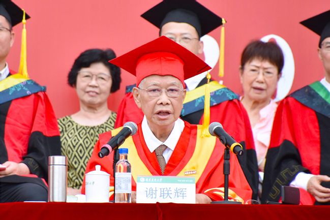 谢联辉在讲话中勉励毕业生要坚持以诚为核心,努力做到“三不忘”“三不丢”和“一牢记”,即不忘家庭父母的养育之恩,不忘学校师长的教育之恩,不忘党和人民的培养之恩;不丢底气,不丢骨气,不丢志气;牢记树立正确的四坚(坚定理想信念、坚强攻坚意志、坚实家国情怀、坚信人民力量)、四观(人生观、世界观、价值观、事业观)、四严(严谨的科学态度、严格的科学方法、严密的科学思维、严肃的科学结论)及八端(孝、悌、忠、信、礼、义、廉、耻),努力成长为堪当民族复兴大任的栋梁之材。