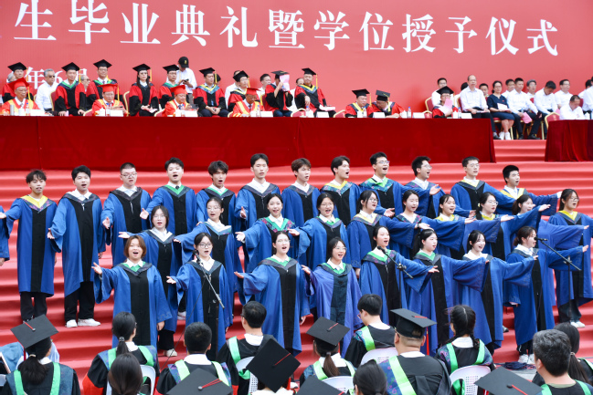 毕业典礼在《侯官是我家》《一路生花》《再见》《毕业歌》优美的旋律中落下帷幕。