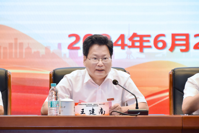 王建南代表学校致辞。他指出,举办“百村千品”赋能活动专题研讨班是深入学习贯彻习近平总书记关于“三农”工作的重要论述和关于实施乡村振兴战略的重要讲话重要指示精神,贯彻落实全省深入学习“千万工程”经验推进乡村全面振兴现场会的实际行动。研讨班在我校举办,充分体现了省乡村振兴促进会对学校的支持与信任。学校将充分发挥学科人才优势,在省乡村振兴促进会的指导下,共同把研讨班办出质量、办出水平、办出实效。