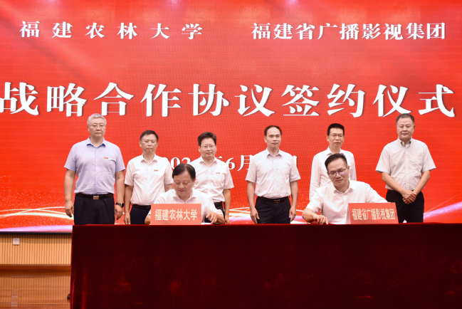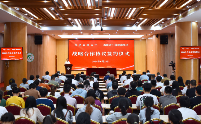 福建省广播影视集团办公室、总编室、财务部、机关党委、策划中心、卫视中心、广播全媒体中心、科技文体传媒中心、融媒体资讯中心、人力资源部、综合频道中心、科技发展部和我校党政办、组织部、宣传部、统战部、学工部、发展规划处、教务处、研究生院、科技处、社科处、对外合作与交流处、校团委、风景园林与艺术学院、乡村振兴学院负责同志,各学院辅导员和校融媒体中心学生代表共100余人参加签约仪式。