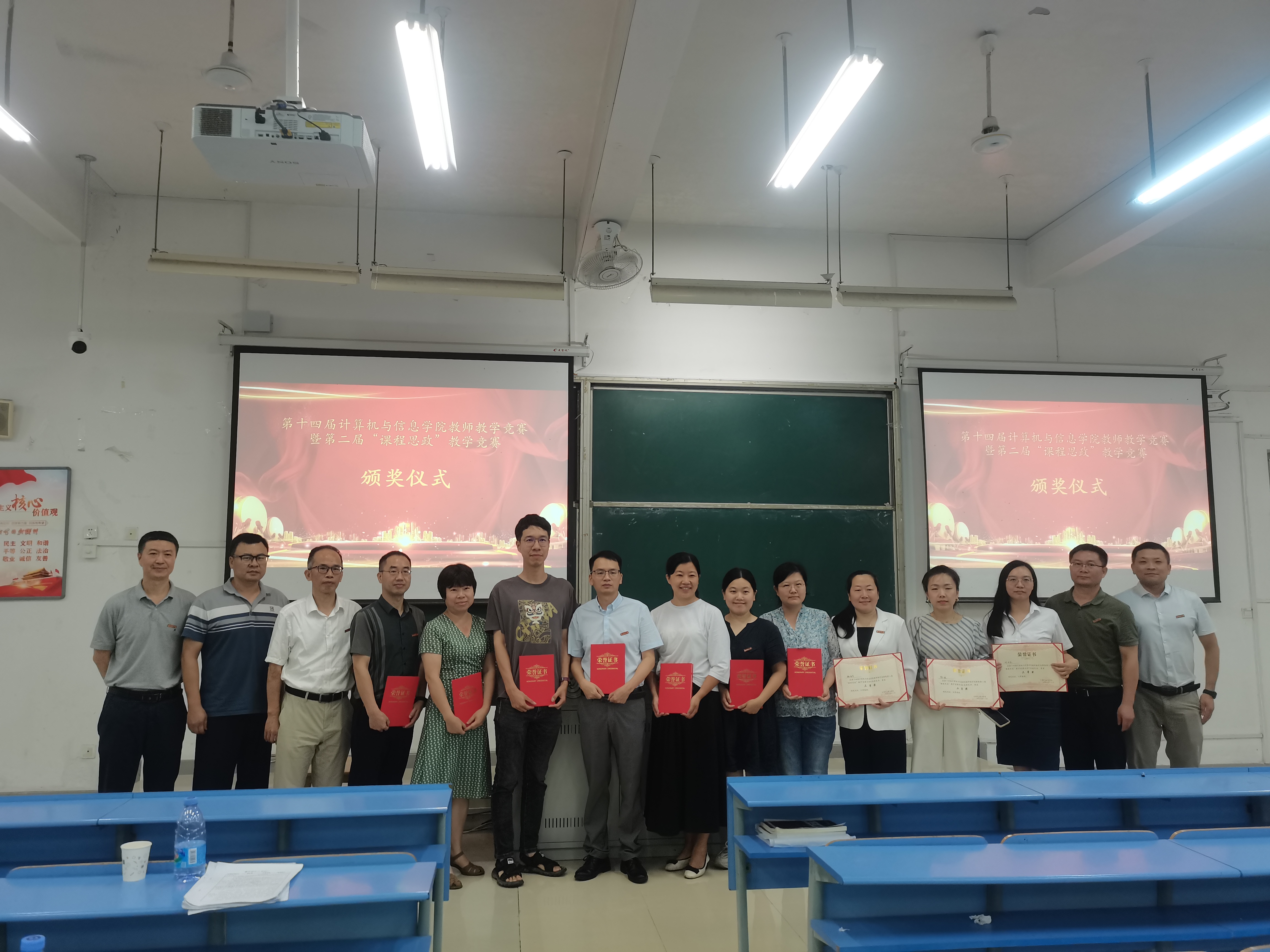 近日,计算机与信息学院举办第十四届教师教学竞赛暨第二届“课程思政”教学竞赛,活动包括教师“赛讲”比赛、课程思政示范课评选。6月20日下午,由计算机学院工会主办的教师“赛讲”在禧强楼106举行。活动由工会主席官明友主持,各部门共推荐7位优秀教师参赛,校督导组陈维默、郑丽凤、詹仕华,省优秀教师陈琼、院督导组组长徐建荣、教学副院长鲍玲鑫应邀担任评委,学院领导班子、全体教师现场共同观摩。