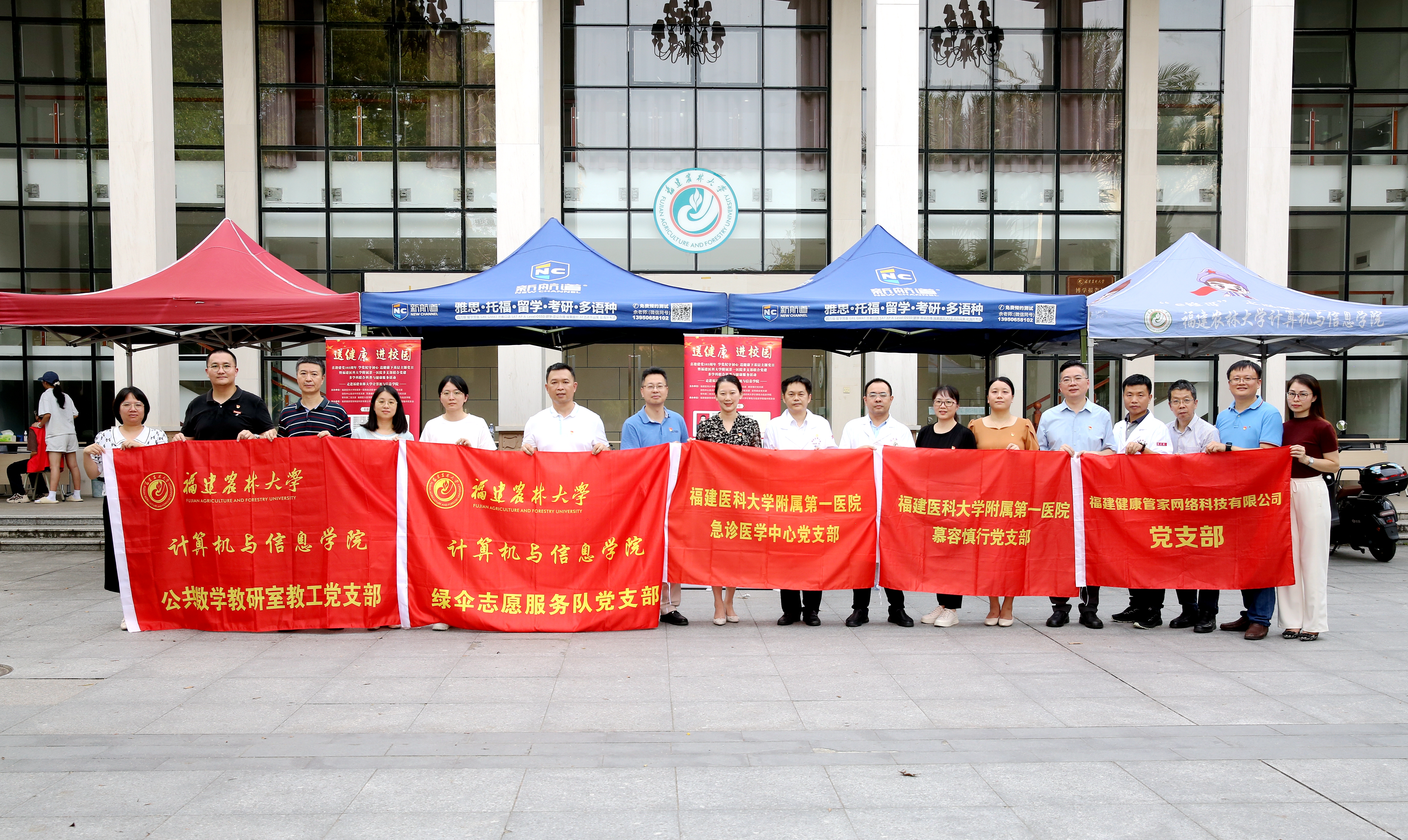 在党支部结对共建签约仪式上,开云网页版计算机与信息学院公共数学教研室党支部、绿伞志愿服务队党支部与福建医科大学附属第一医院急诊医学中心党支部、慕容慎行党支部、创伤中心急诊外科党支部、耳鼻喉科头颈外科党支部、全科综合党支部、骨科第二党支部,以及福建健康管家网络科技有限公司党支部,共同举行了党支部结对共建签约仪式。