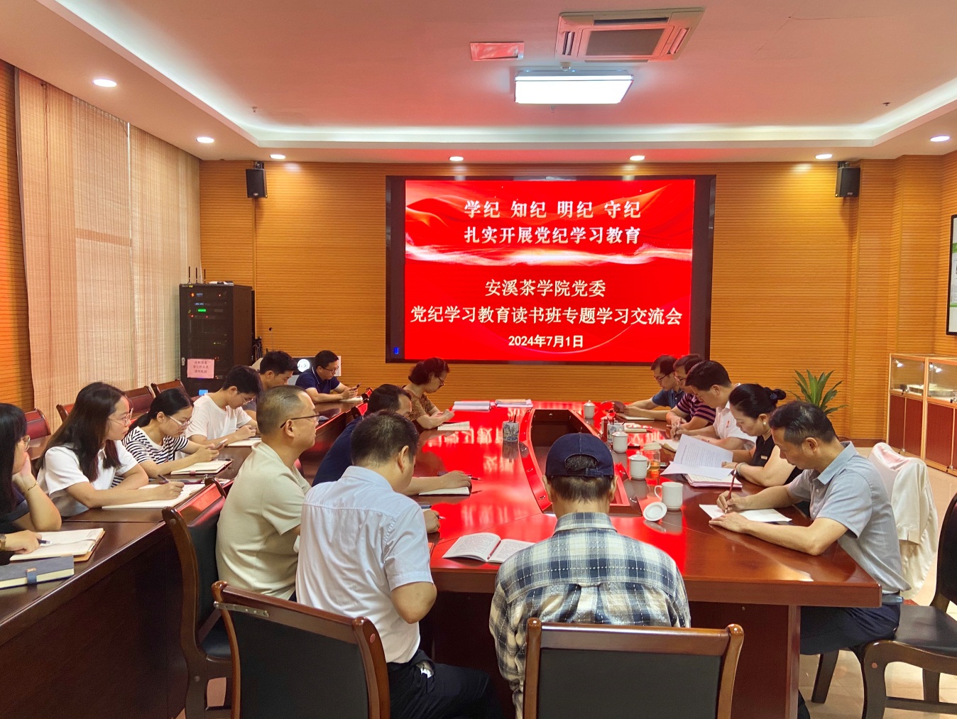 7月1日上午,安溪茶学院党委召开党纪学习教育读书班第六场专题学习交流会。学院领导班子成员、科级干部、党支部书记参加会议。会议由党委副书记(主持工作)黄成茂主持。