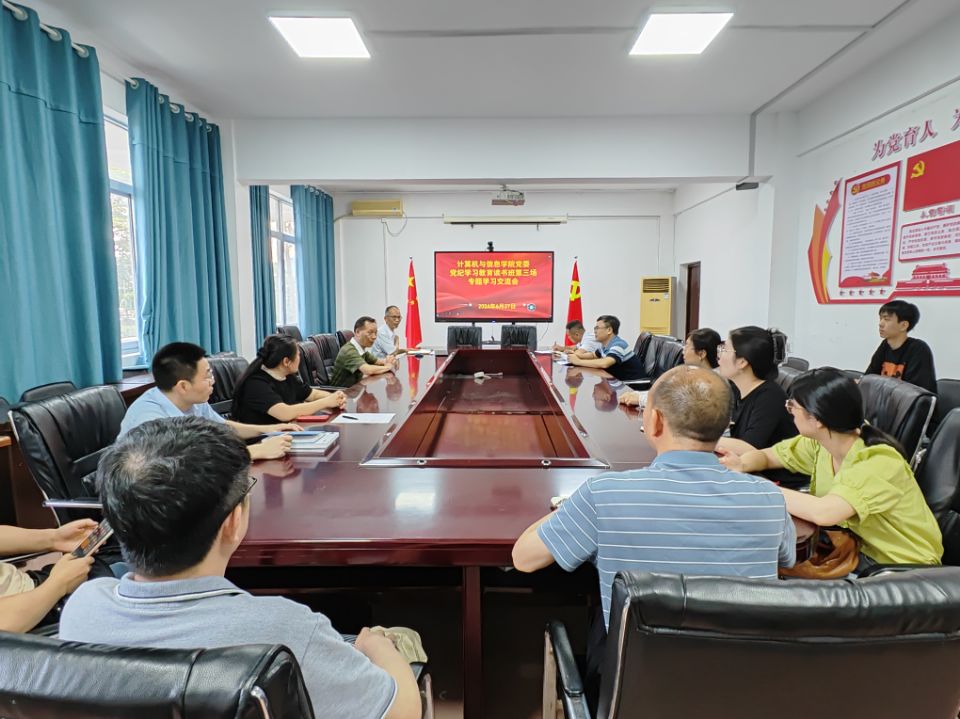 6月27日下午,计算机与信息学院党委在302会议室举行党纪学习教育读书班第三场专题学习交流会,学院党委书记钟一文交流学习体会,学院党委委员、党政领导、党支部书记参加了会议。