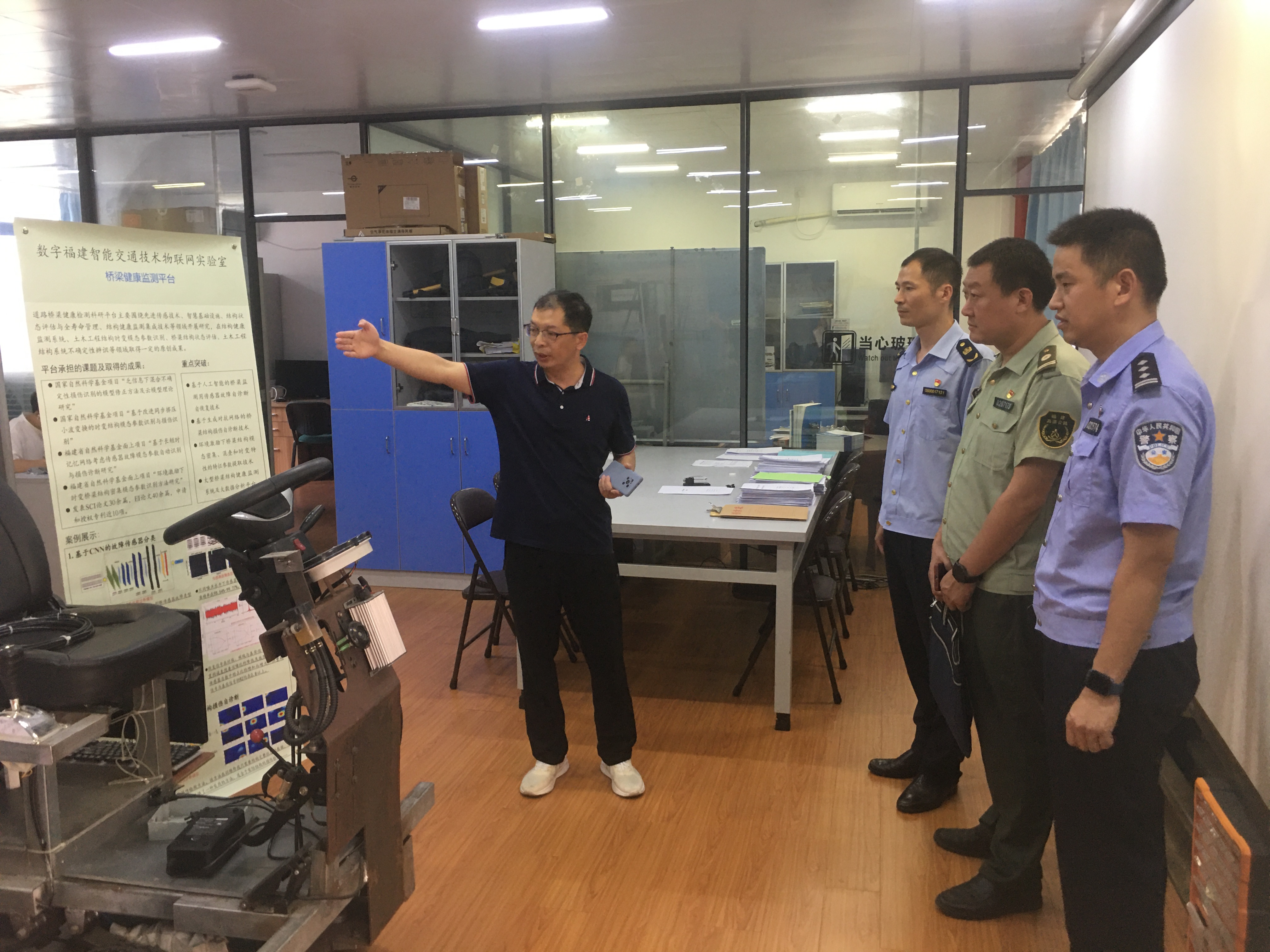 座谈会后,在徐锦强、岳小泉、朱志敏等几位老师陪同下,各支部党员一行参观了数字福建智能交通技术物联网实验室、智慧交通工程实训室、智慧交通虚拟仿真沙盘等实验室。